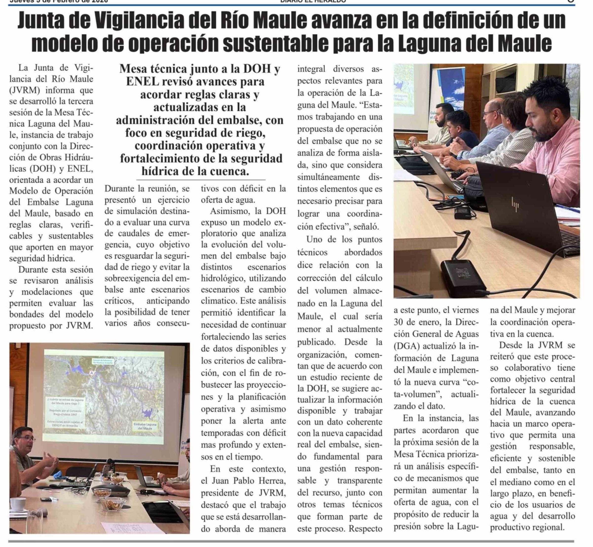 Junta de Vigilancia del Río Maule avanza en la definición de un modelo de operación sustentable para la Laguna del Maule 05-02-2026 El Heraldo |