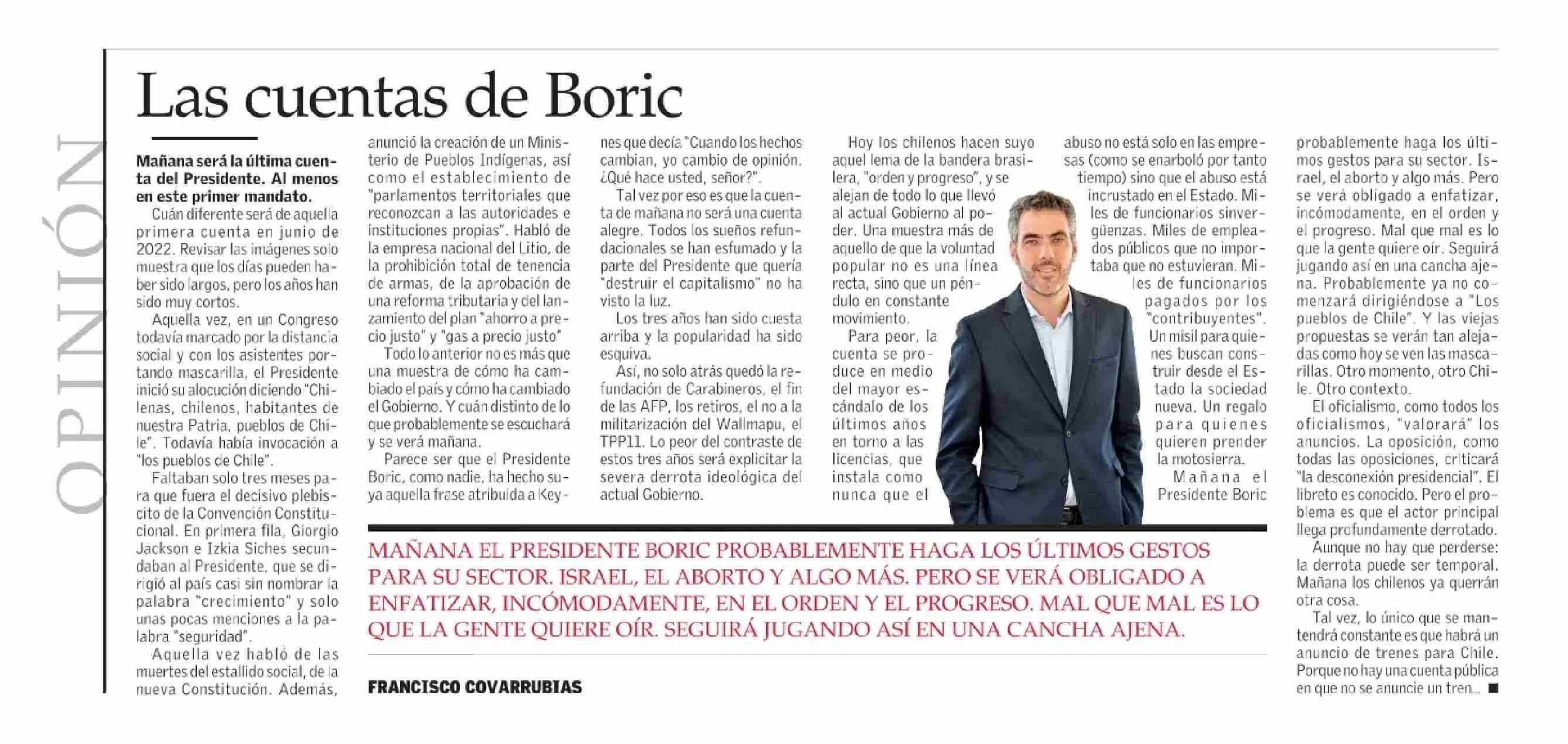 COLUMNAS DE OPINIÓN: Las cuentas de Boric 31-05-2025 El Mercurio |
