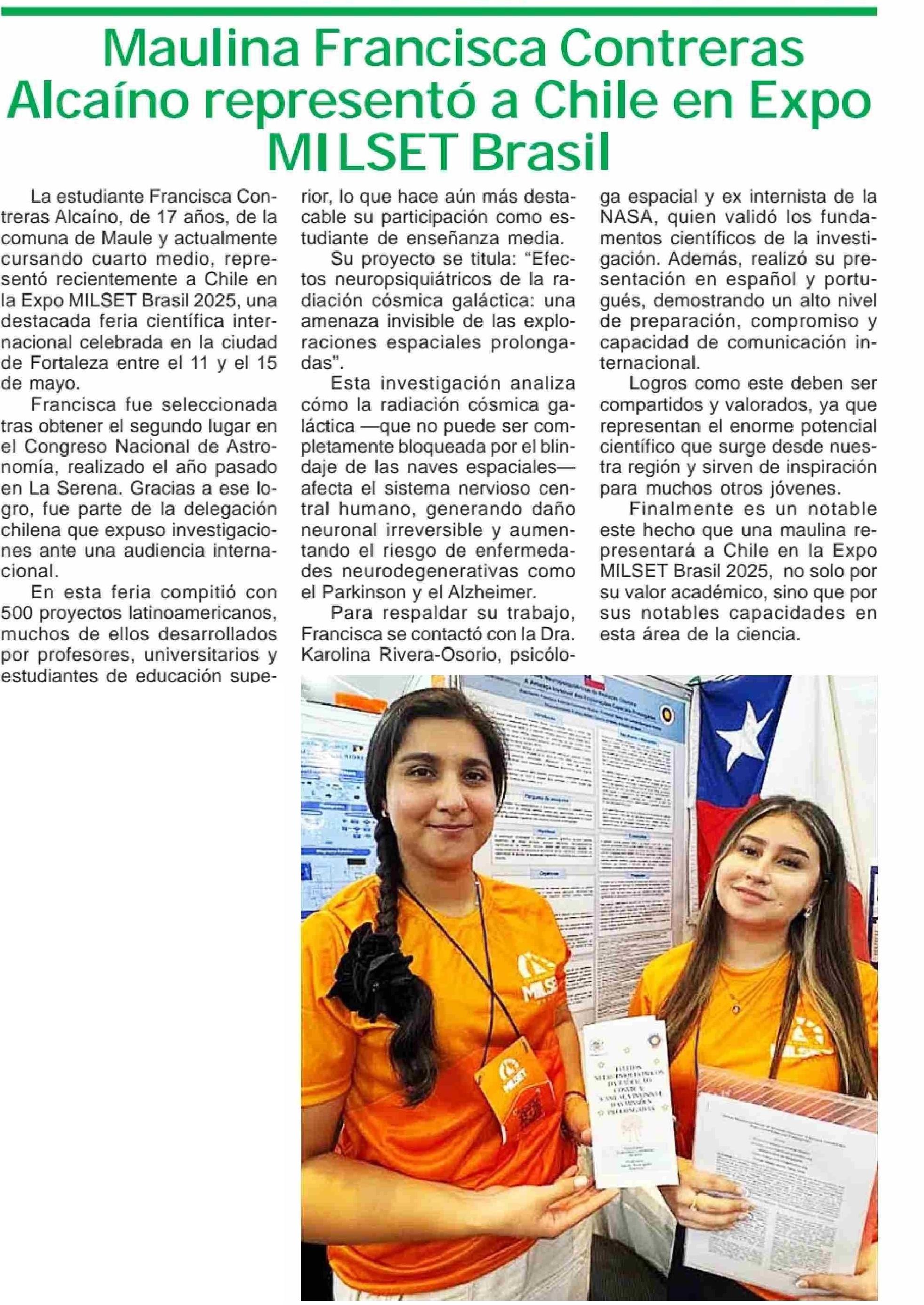 Maulina Francisca Contreras Alcaíno representó a Chile en Expo MI LSET Brasil 25-05-2025 Maule Hoy |