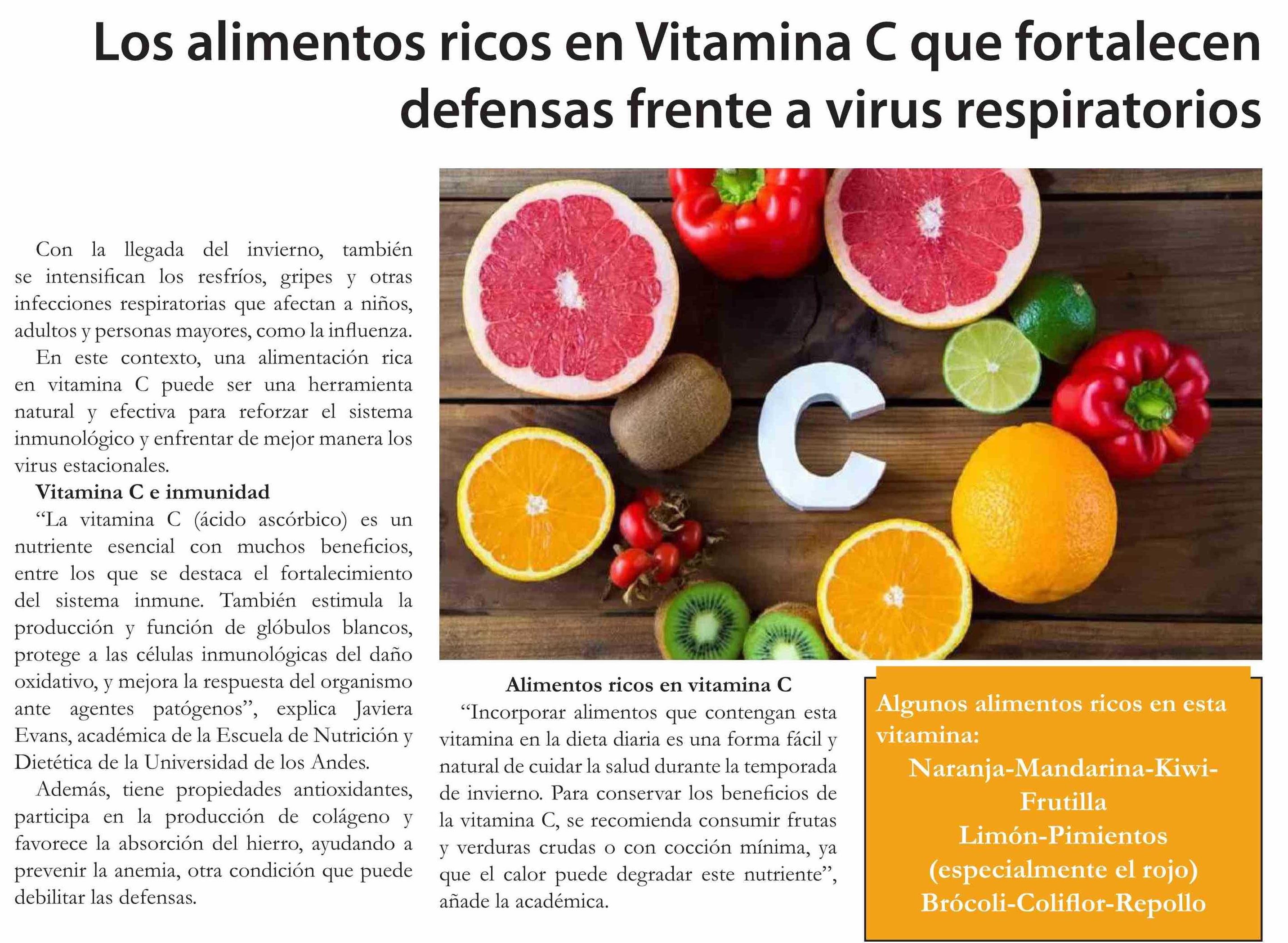Los alimentos ricos en Vitamina C que fortalecen defensas frente a virus respiratorios 28-04-2025 El Divisadero |