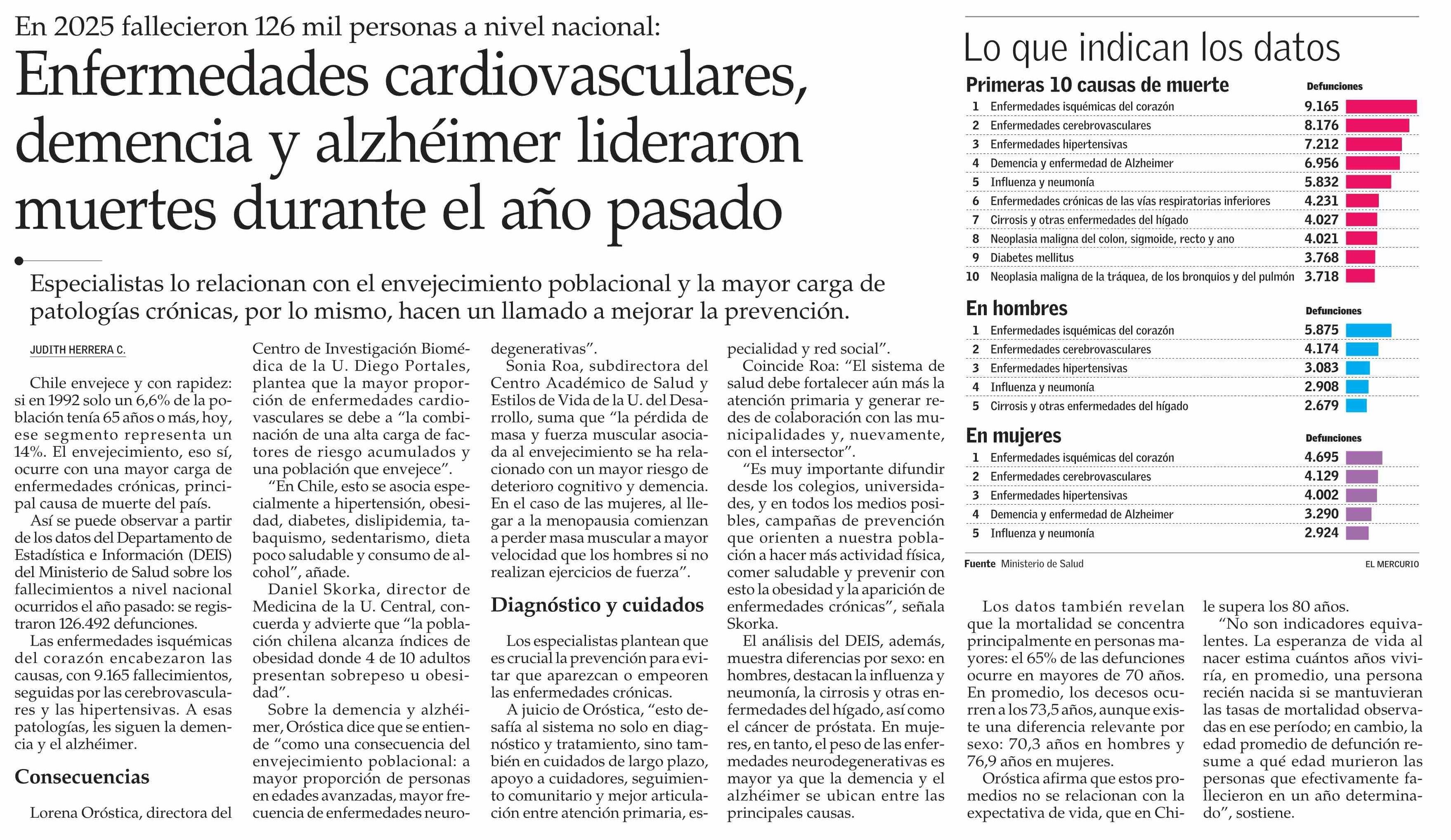 Título: Enfermedades cardiovasculares, demencia y alzhéimer lideraron muertes durante el año pasado