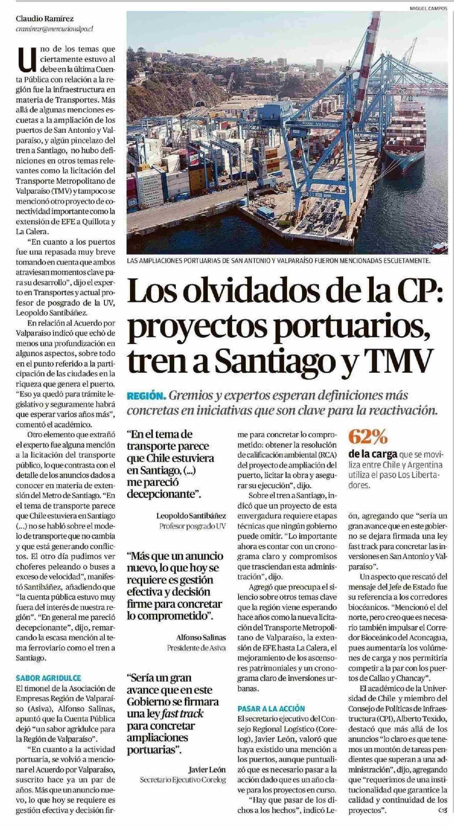 Los olvidados de la CP: proyectos portuarios, tren a Santiago y TMV 03-06-2025 El Mercurio de Valparaíso |