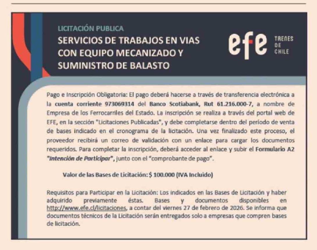 Aviso Licitaciones: EFE 27-02-2026 Diario Financiero |