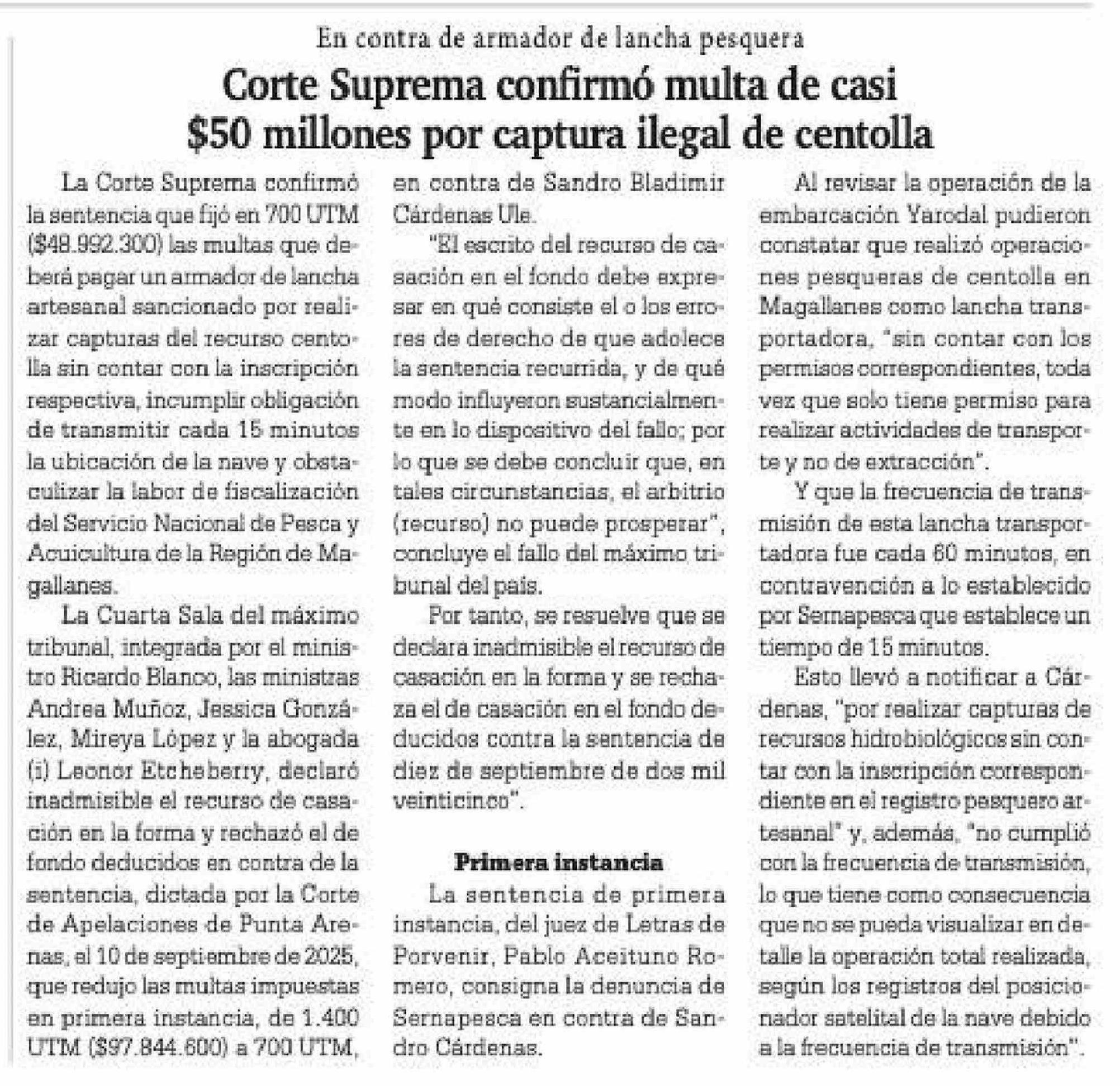 Título: Corte Suprema confirmó multa de casi $50 millones por captura ilegal de centolla