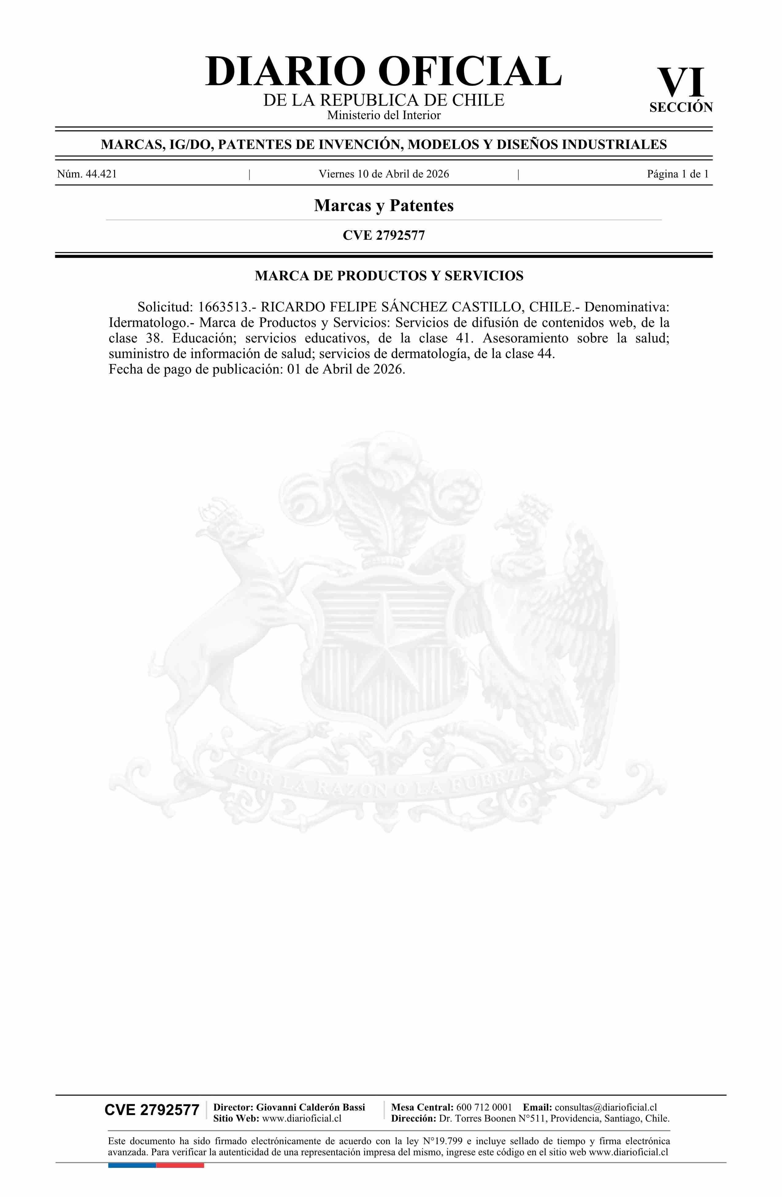 Solicitud número 1663513.- Idermatologo 10-04-2026 Diario Oficial Edición Electrónica |