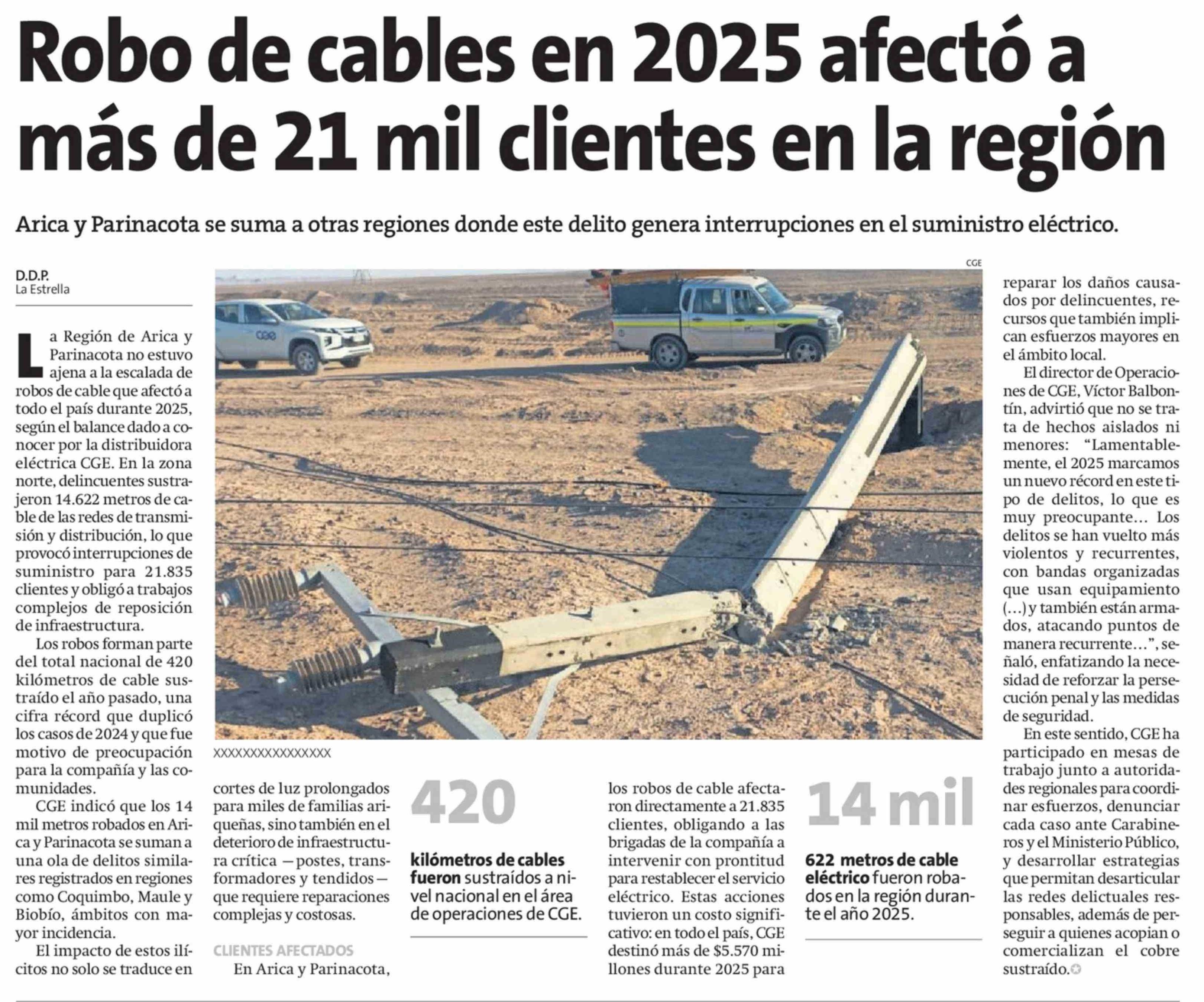 Título: Robo de cables en 2025 afectó a más de 21 mil clientes en la región