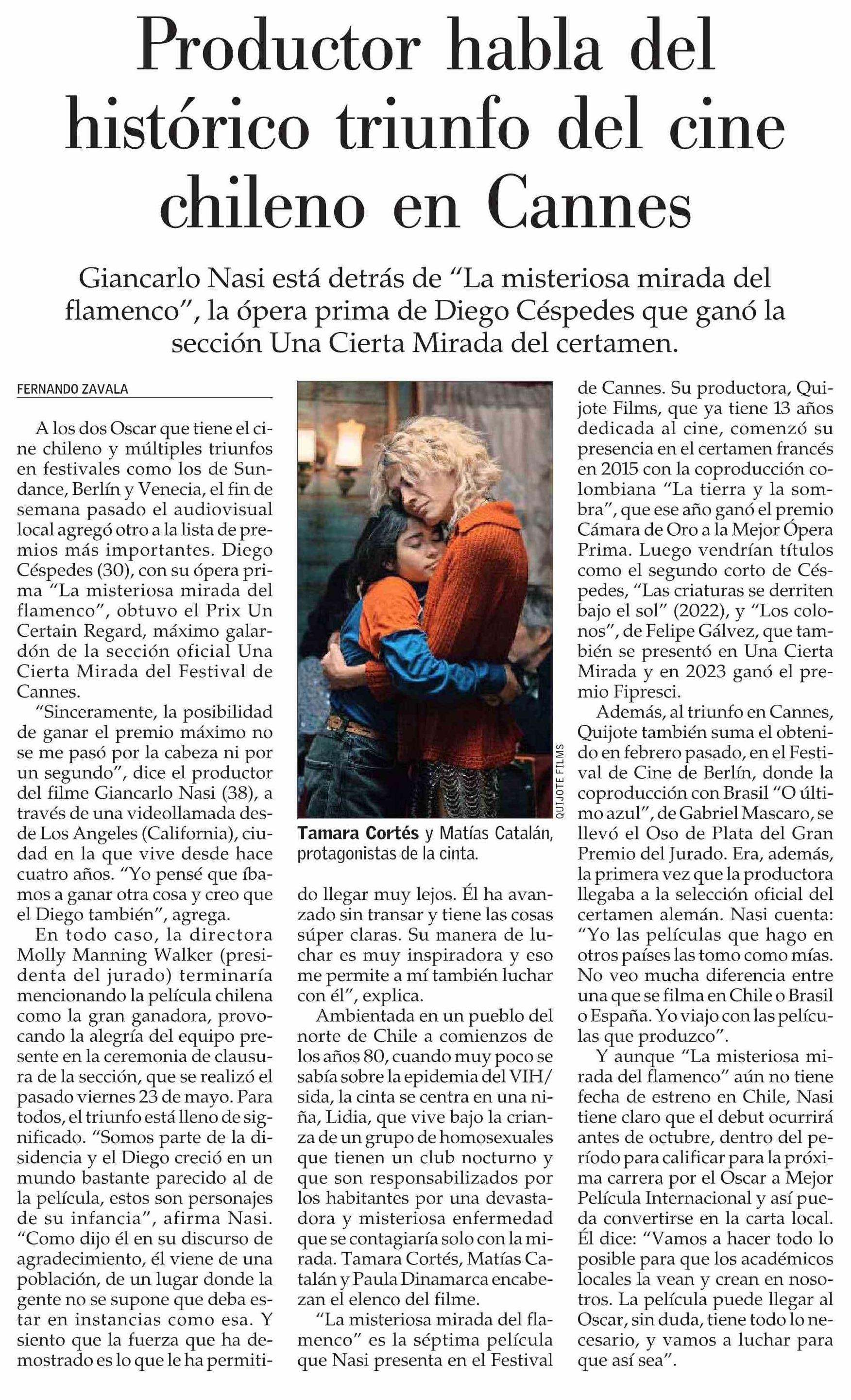 Productor habla del histórico triunfo del cine chileno en Cannes 01-06-2025 El Mercurio |