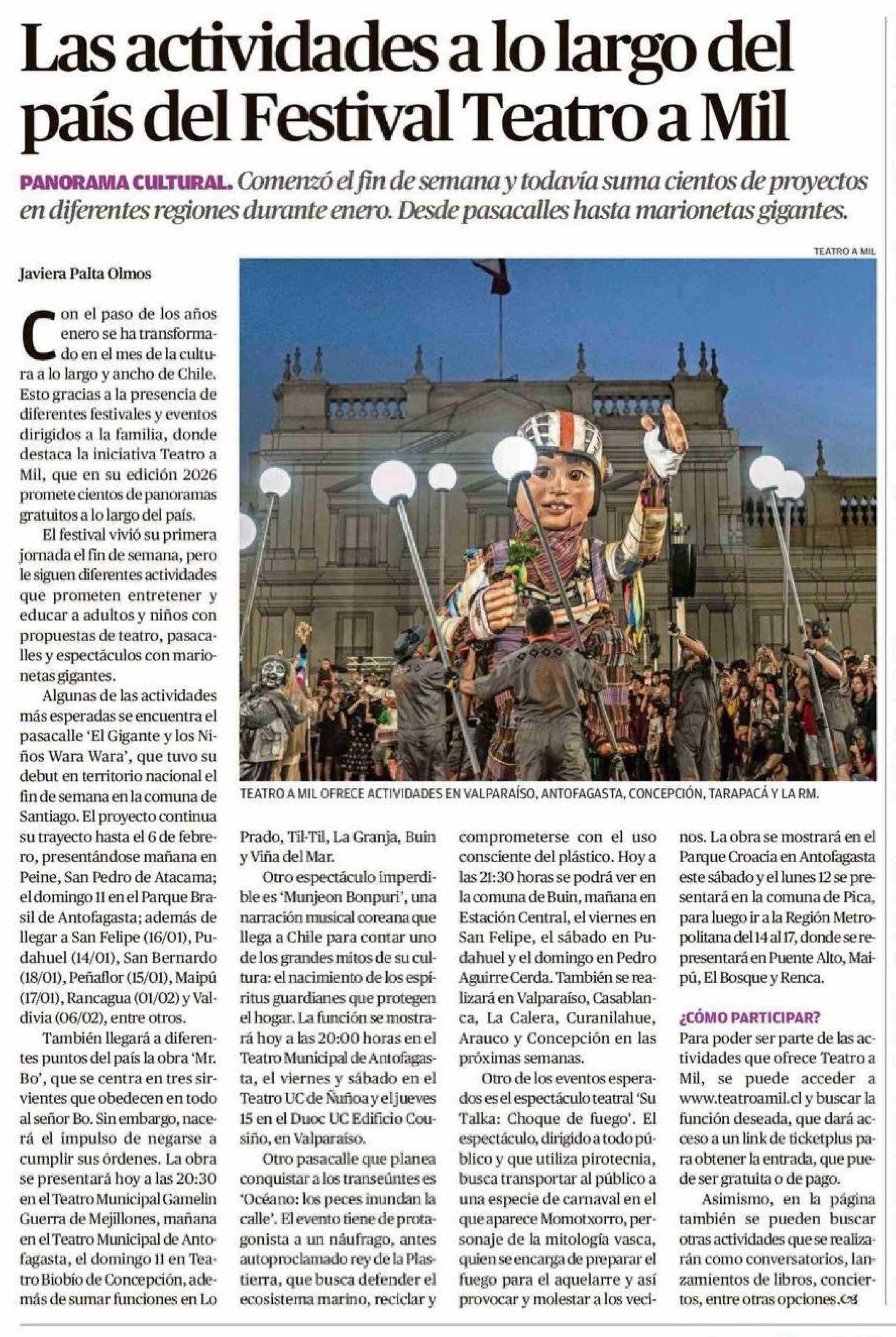 Título: Las actividades a lo largo del país del Festival Teatro a Mil