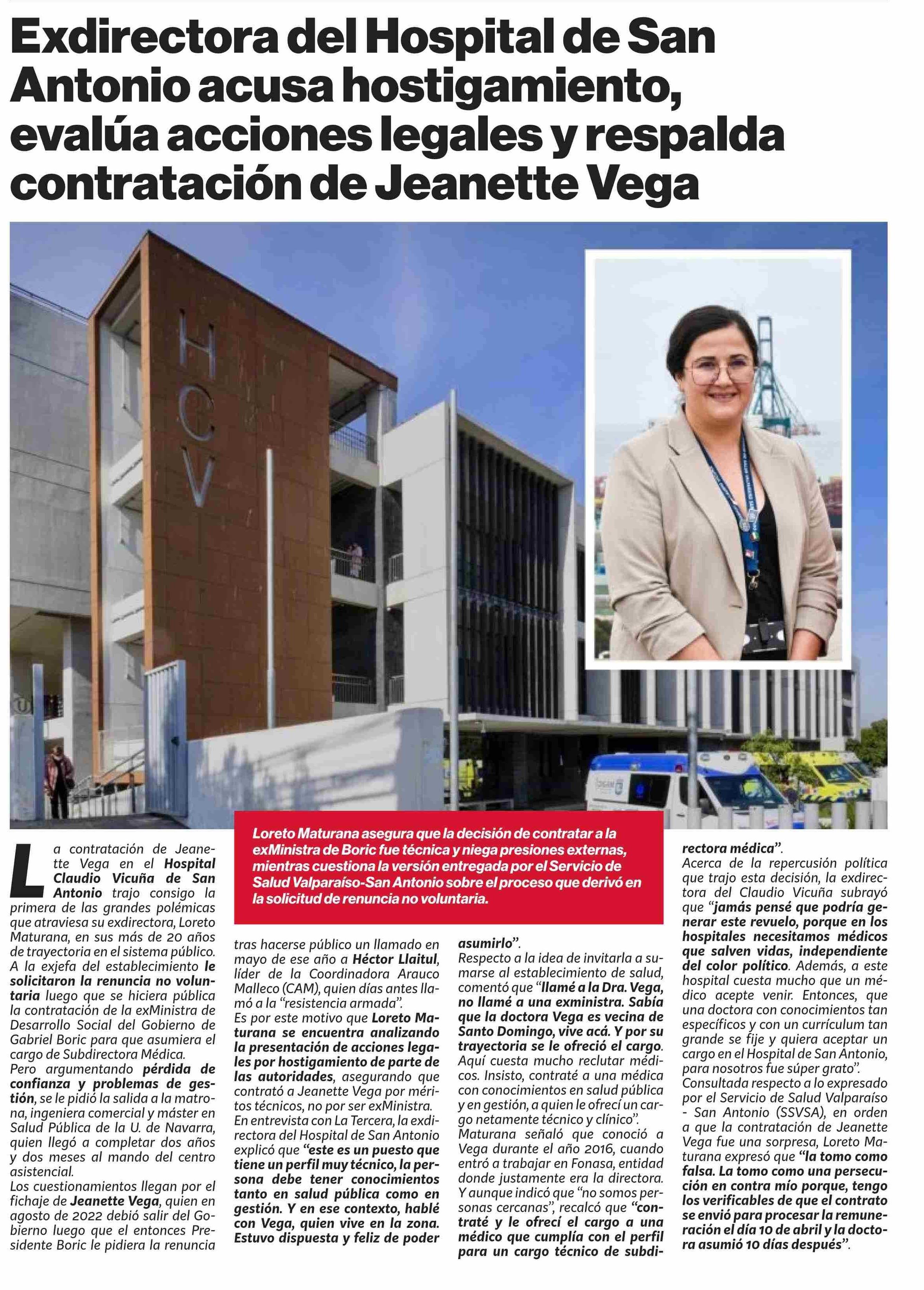 Exdirectora del Hospital de San Antonio acusa hostigamiento, evalúa acciones legales y respalda contratación de Jeanette Vega 27-04-2026 Puranoticia.cl |