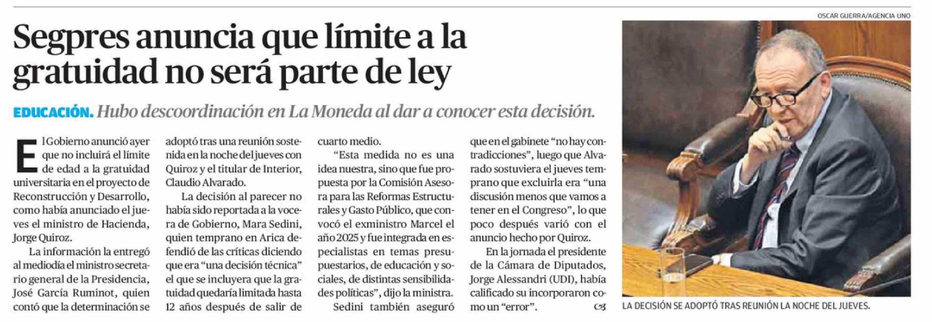 Título: Segpres anuncia que límite a la gratuidad no será parte de ley