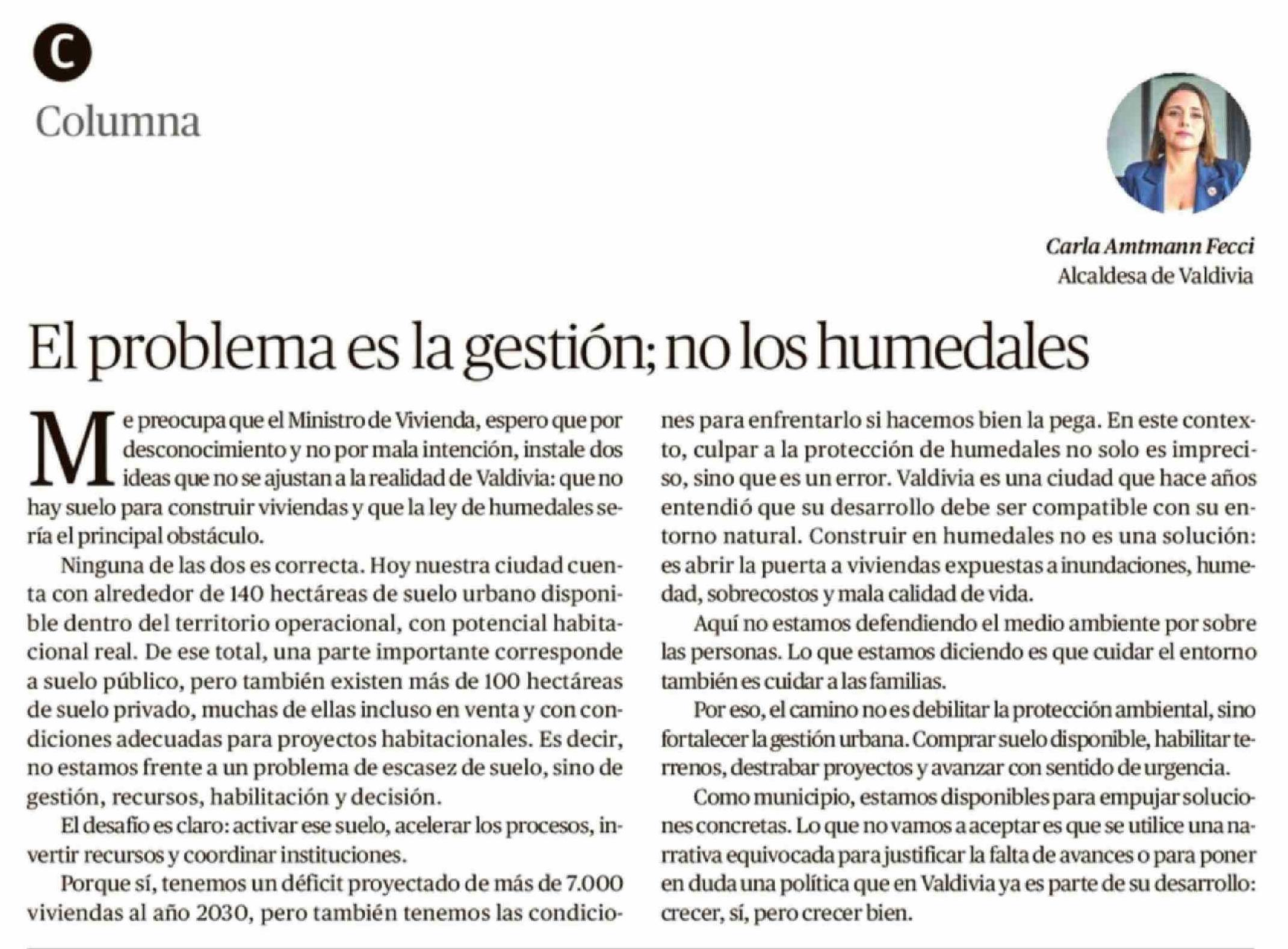 Título: Columnas de Opinión: El problema es la gestión; no los humedales