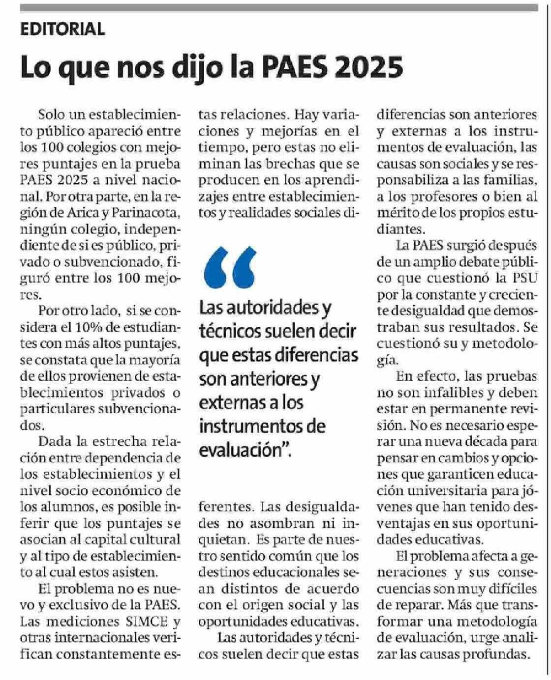 Título: Editorial: Lo que nos dijo la PAES 2025
