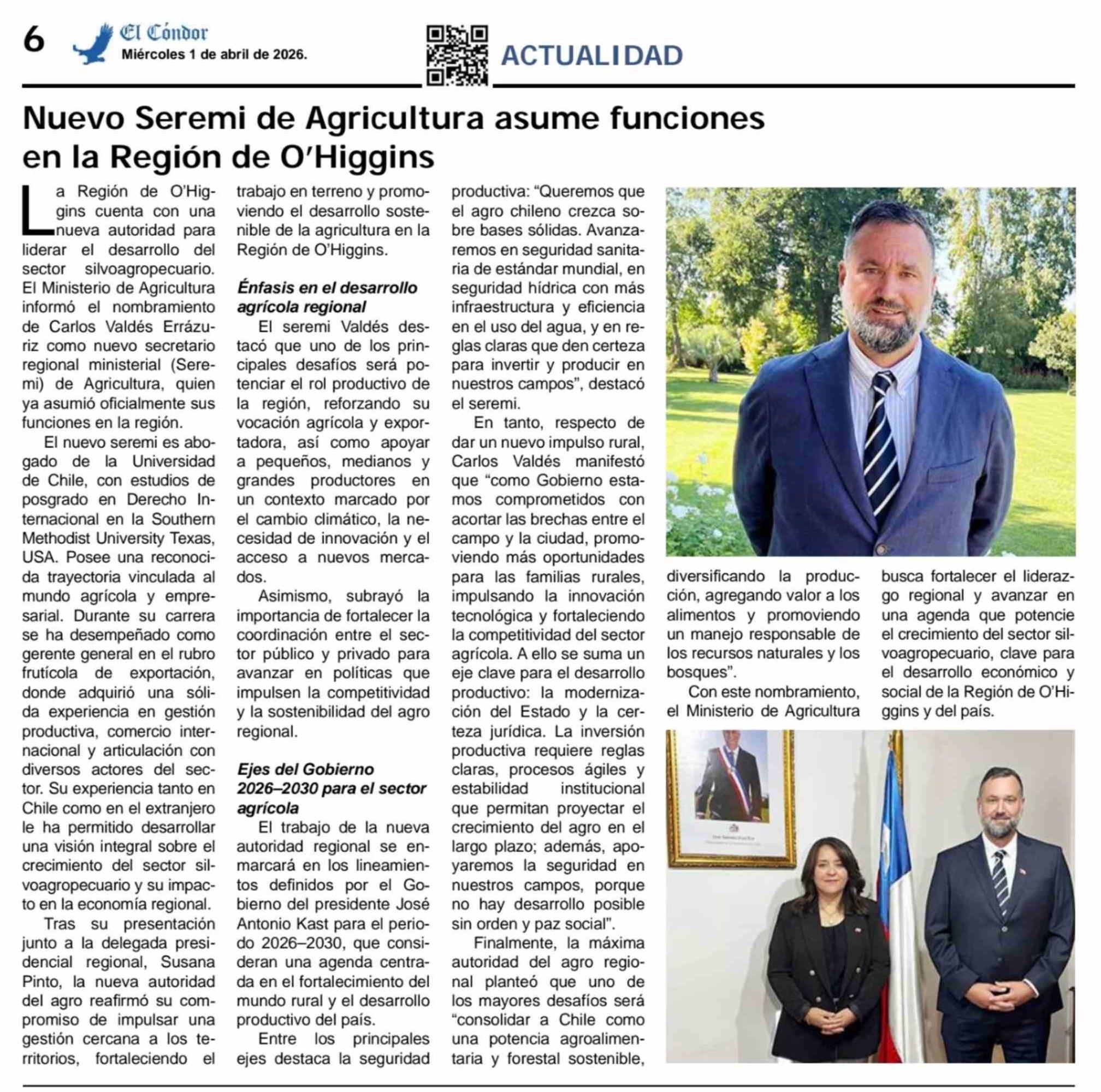 Fecha: 01-04-2026 Sector: Noticia general Región: Región del Libertador General Bernardo O'Higgins