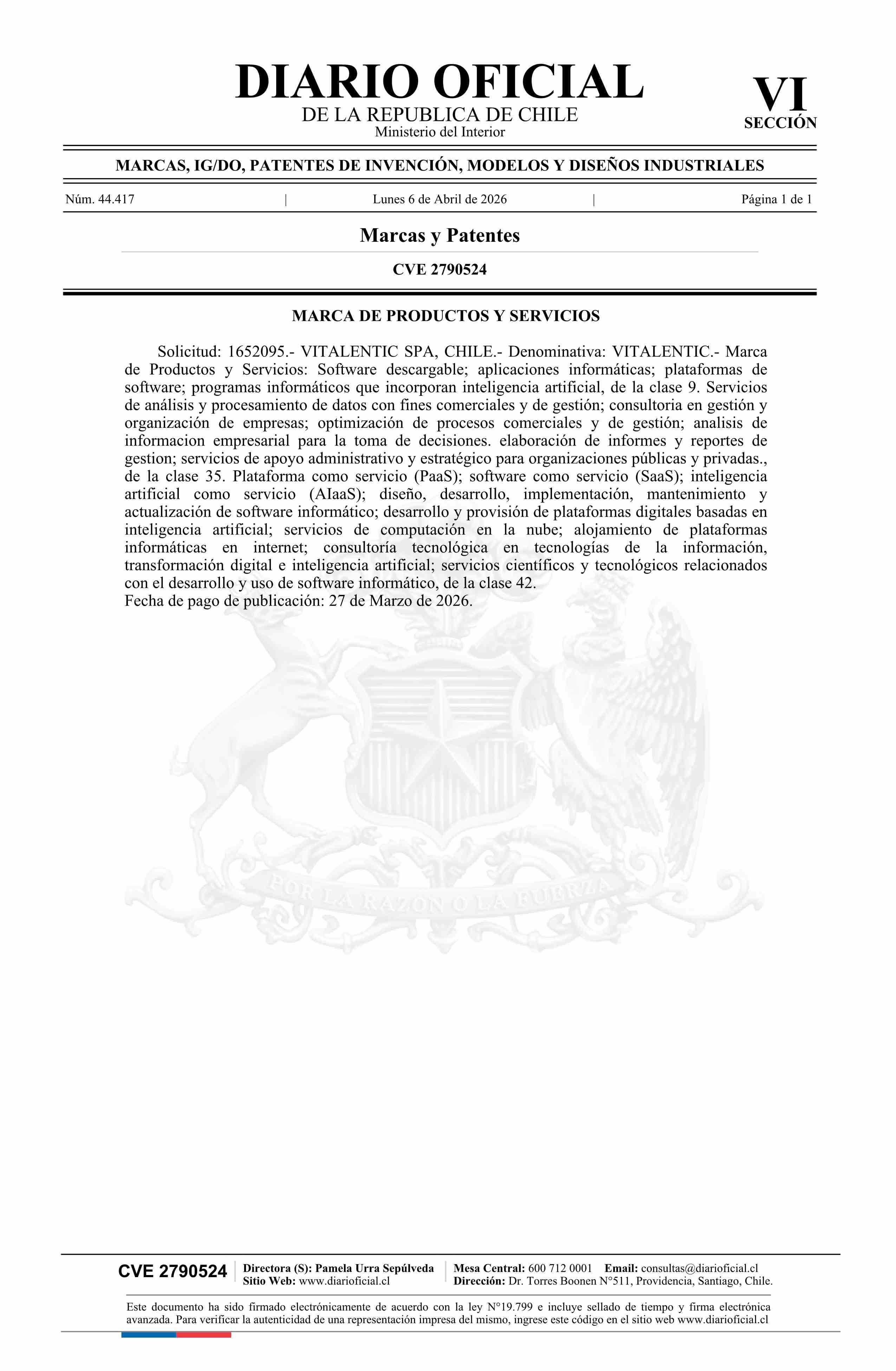 Solicitud número 1652095.- VITALENTIC 06-04-2026 Diario Oficial Edición Electrónica |