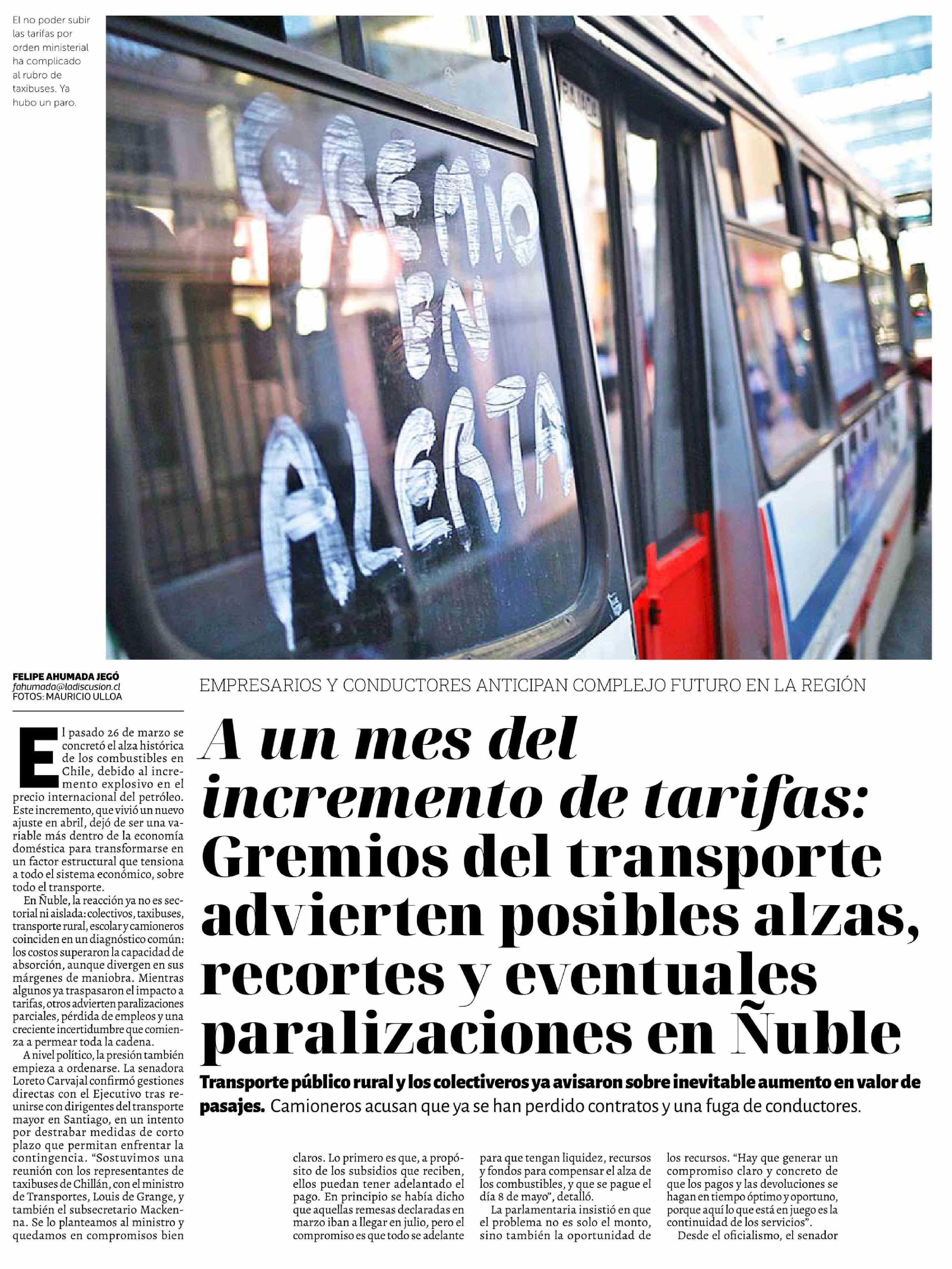 Título: A un mes del incremento de tarifas: Gremios del transporte advierten posibles alzas, recortes y eventuales paralizaciones en Ñuble