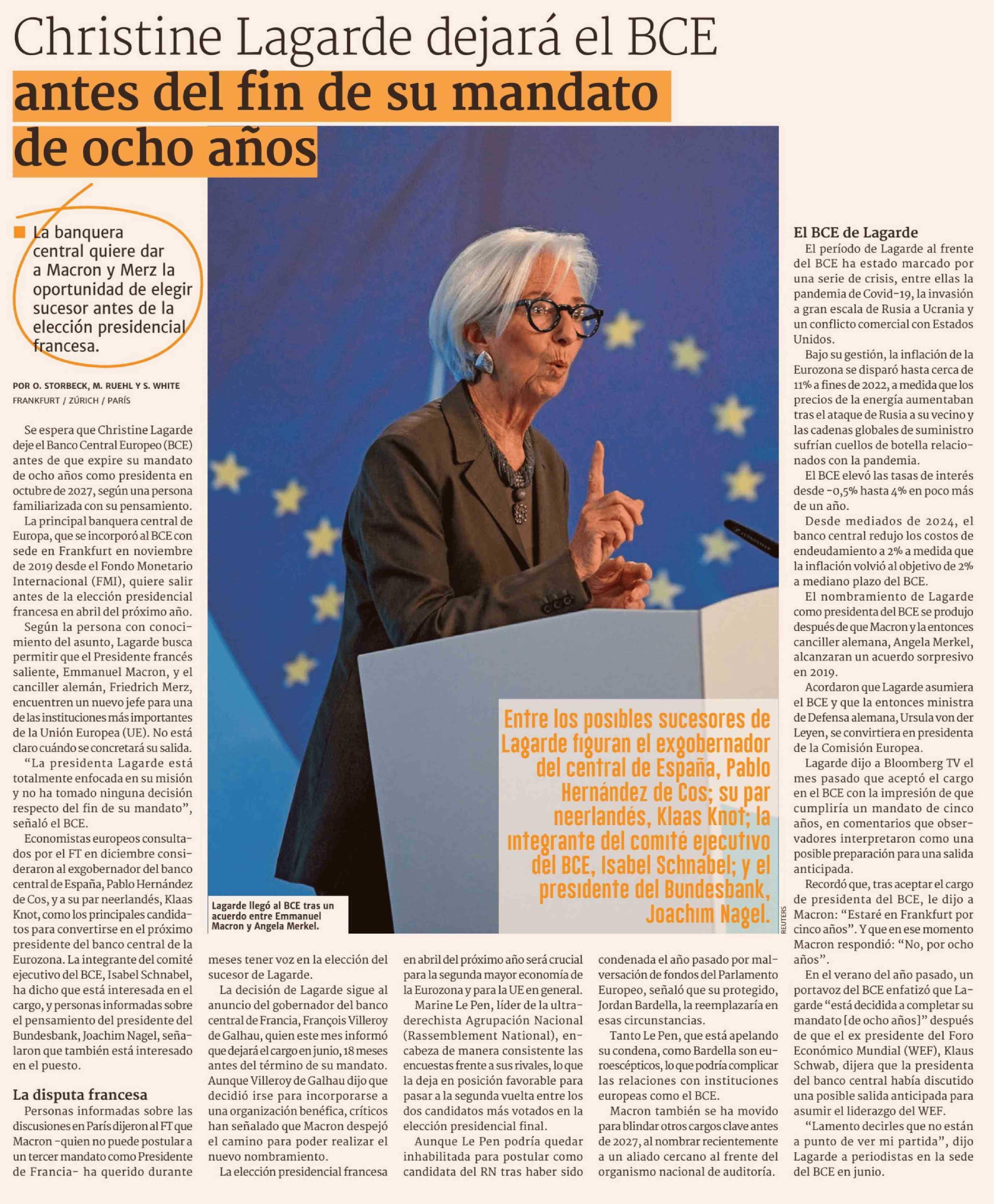 | Título: | Christine Lagarde dejará el BCE antes del fin de su mandato de ocho años |