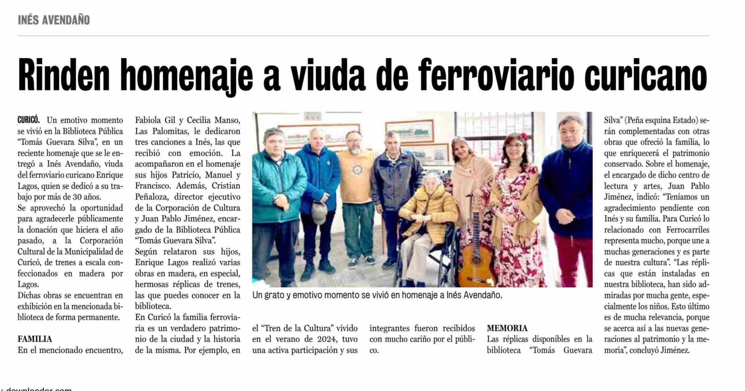Rinden homenaje a viuda de ferroviario curicano 10-06-2025 La Prensa de Curicó |