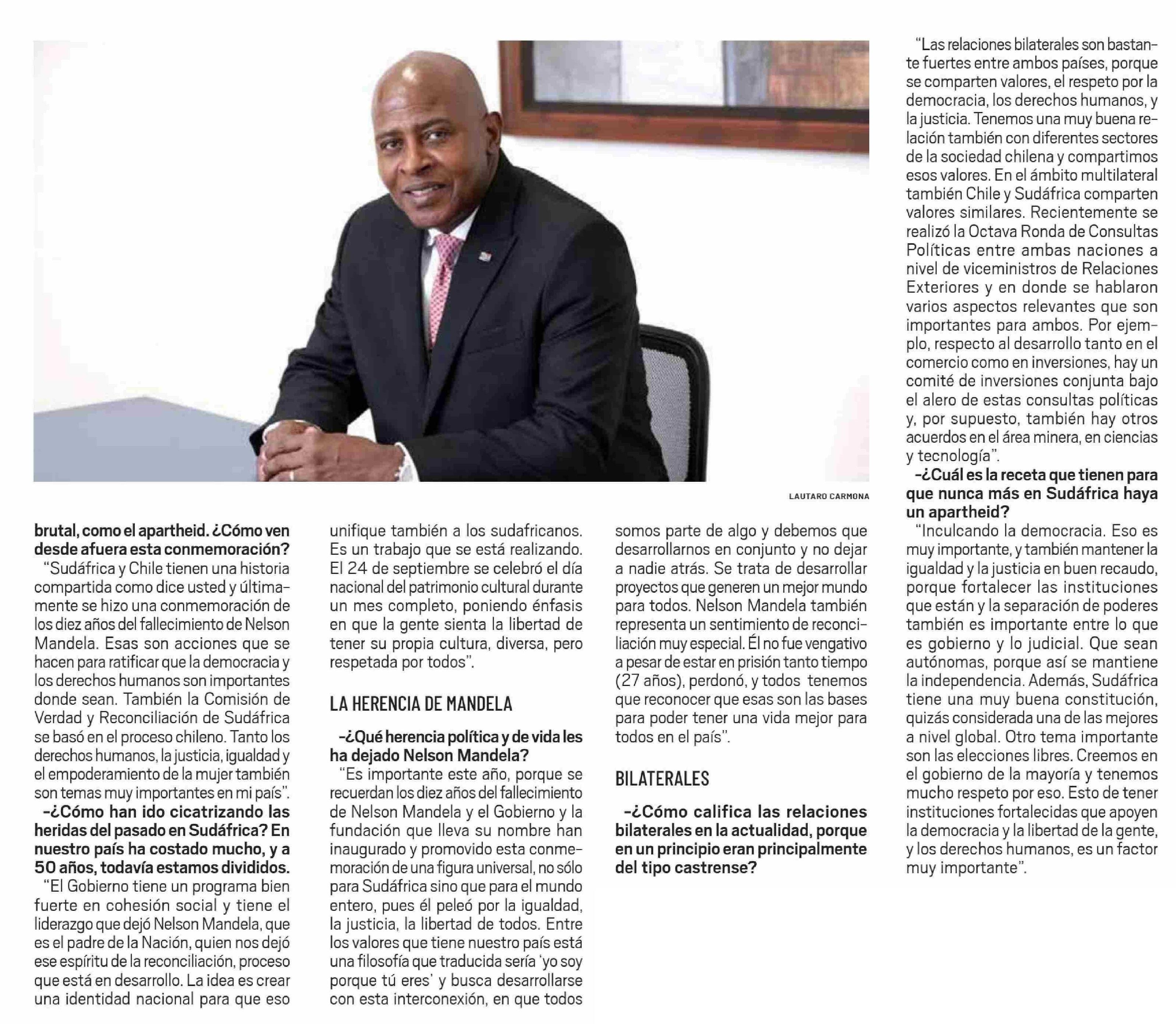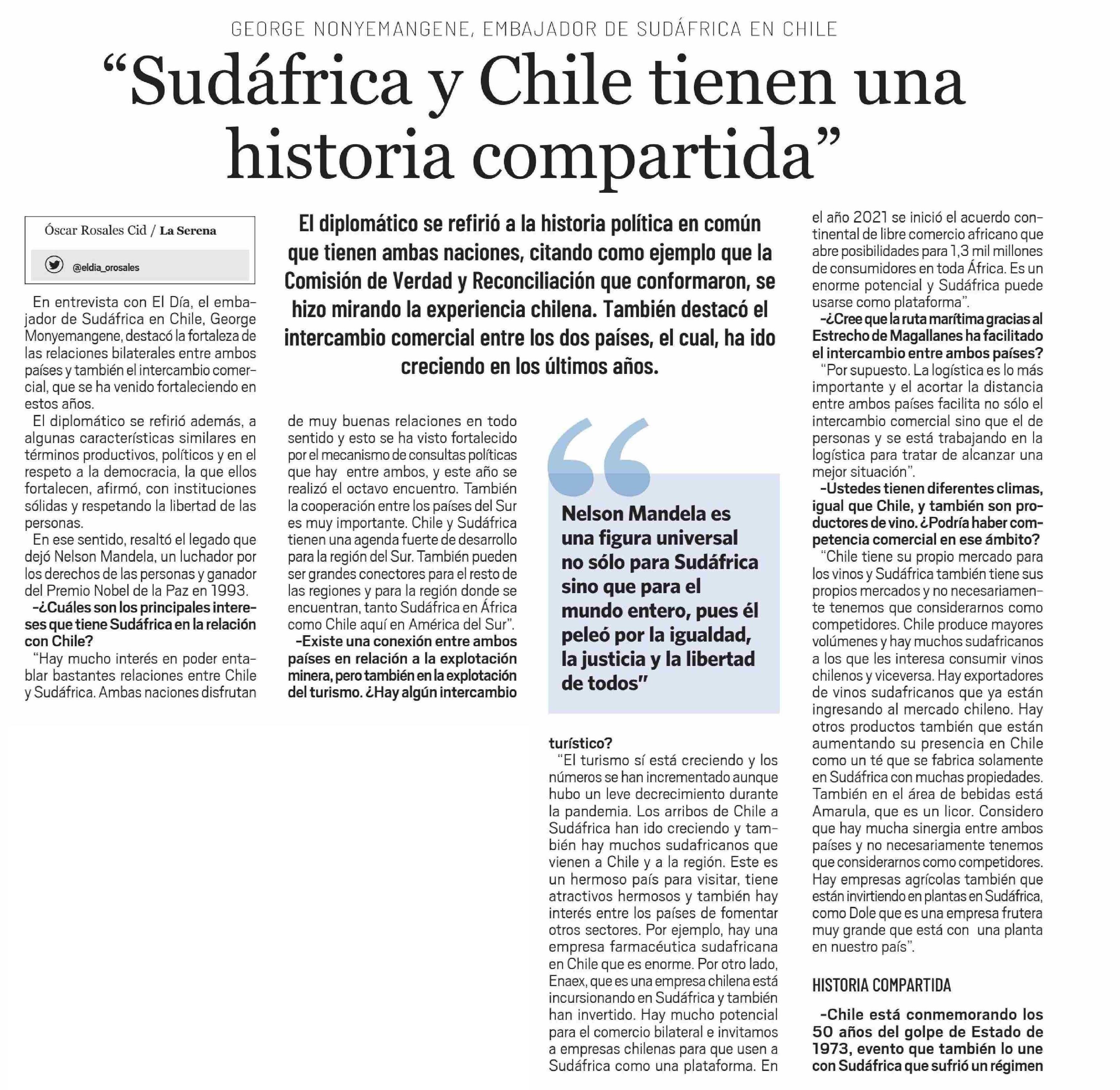 | Título: | "Sudáfrica y Chile tienen una historia compartida" |