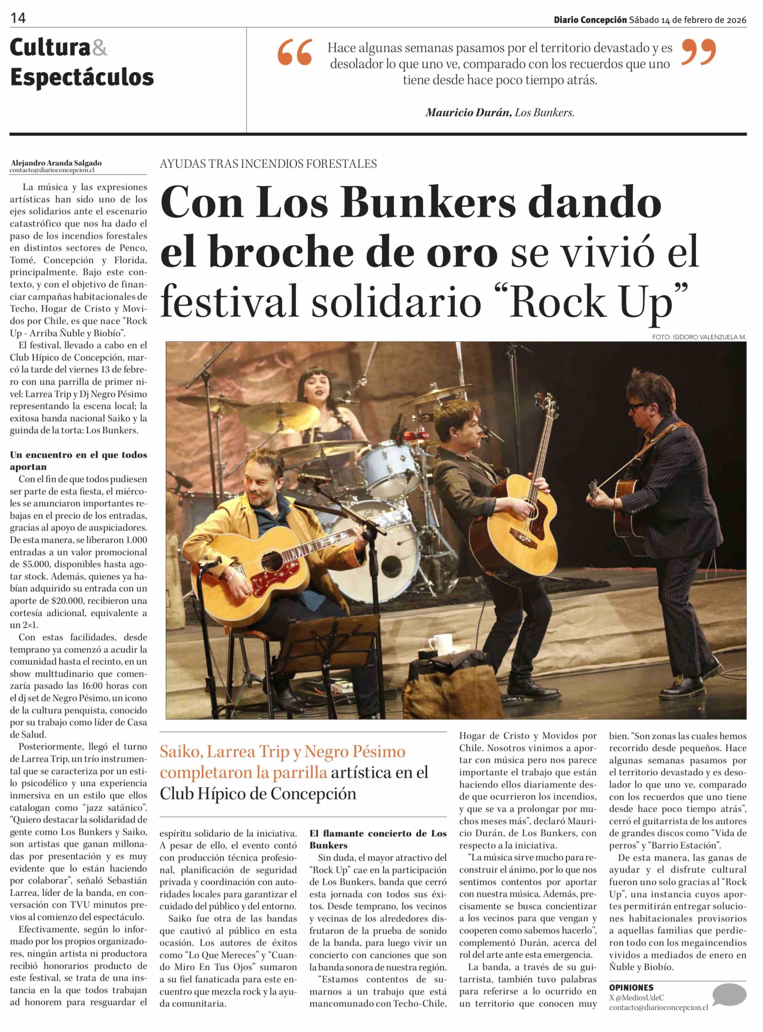 Con Los Bunkers dando el broche de oro se vivió el festival solidario "Rock Up" 14-02-2026 Diario Concepción |