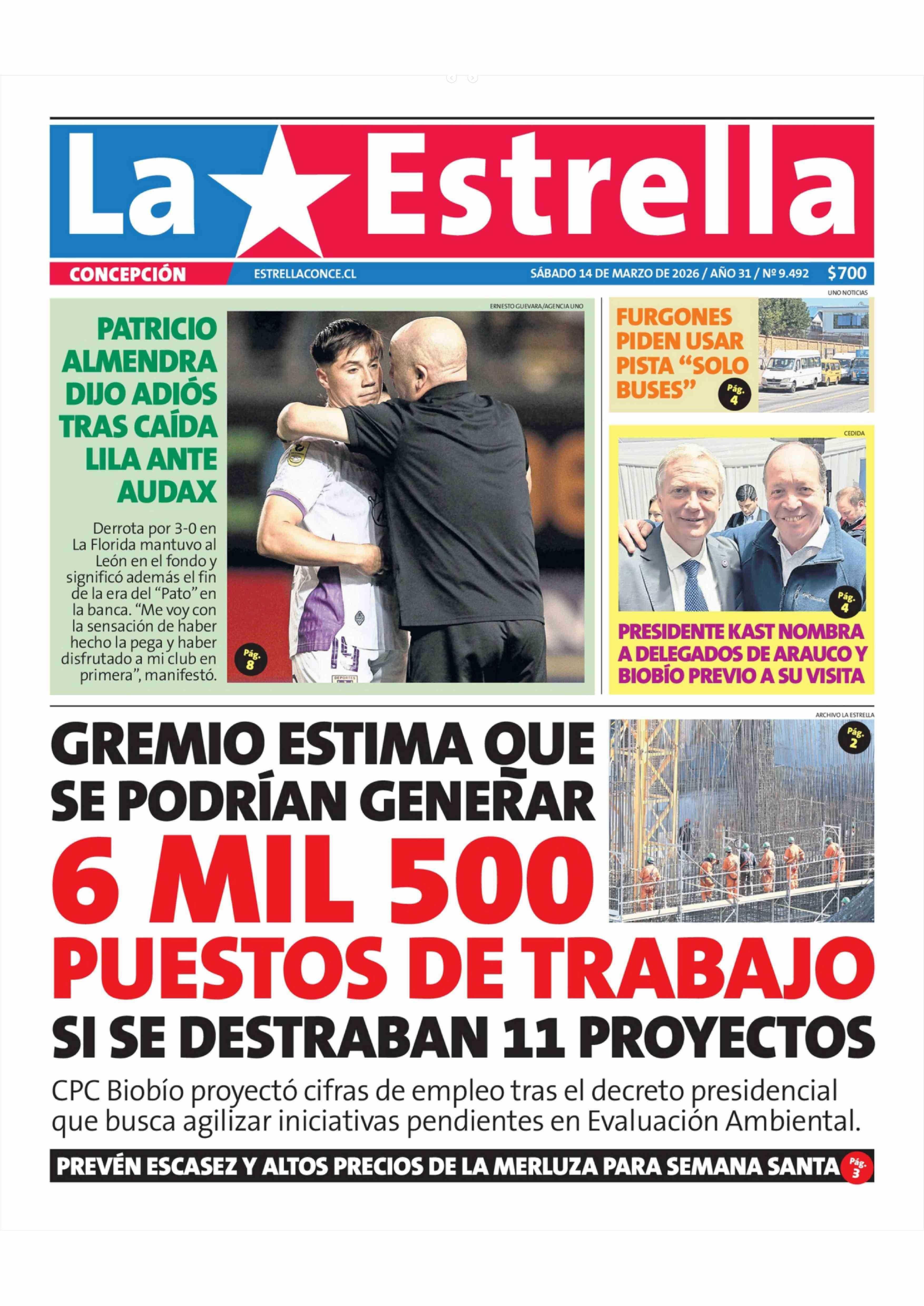PORTADA LA ESTRELLA DE CONCEPCIÓN CHILE 14-03-2026 La Estrella de Concepción |