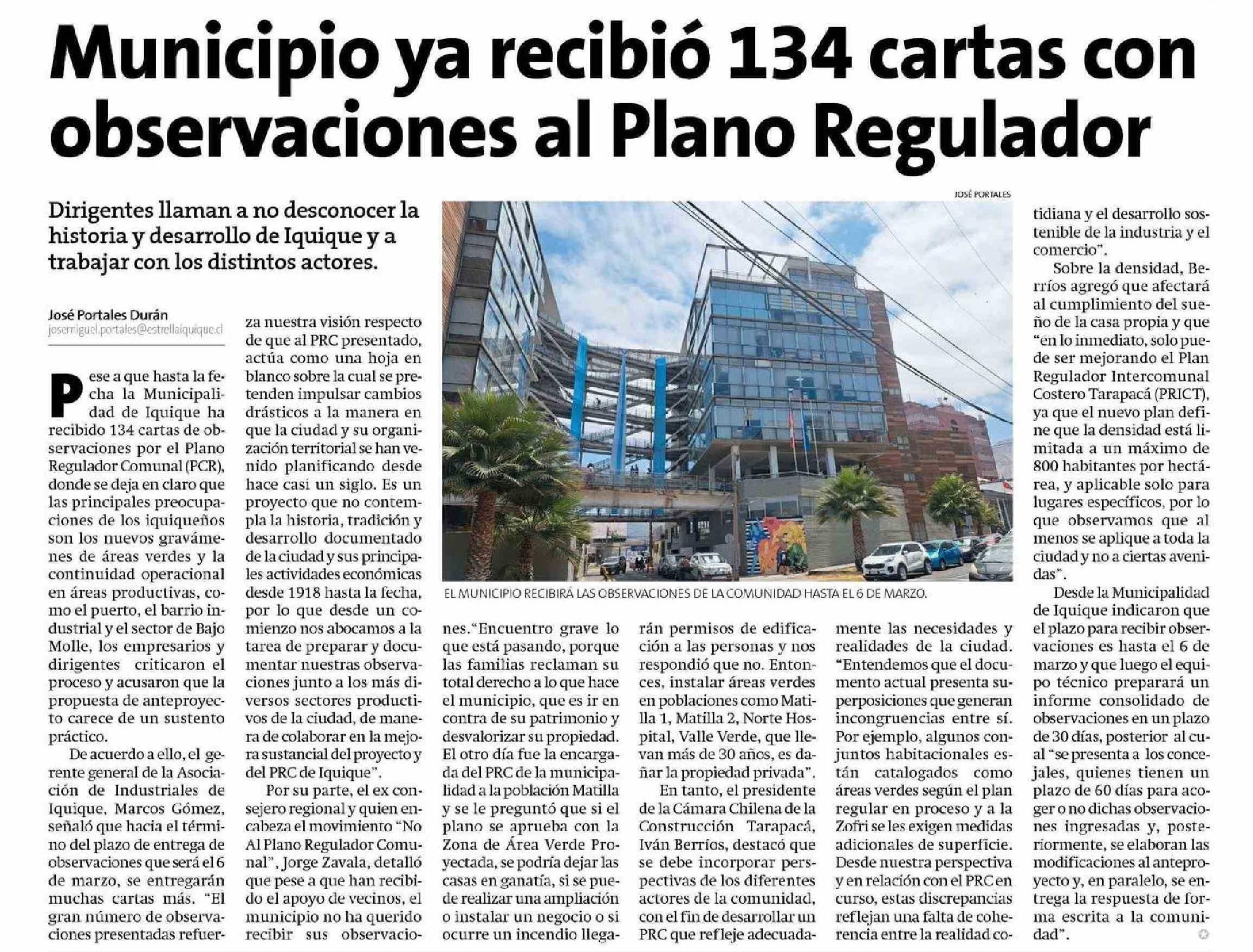 Municipio ya recibió 134 cartas con observaciones al Plano Regulador 16-02-2024 La Estrella de Iquique |