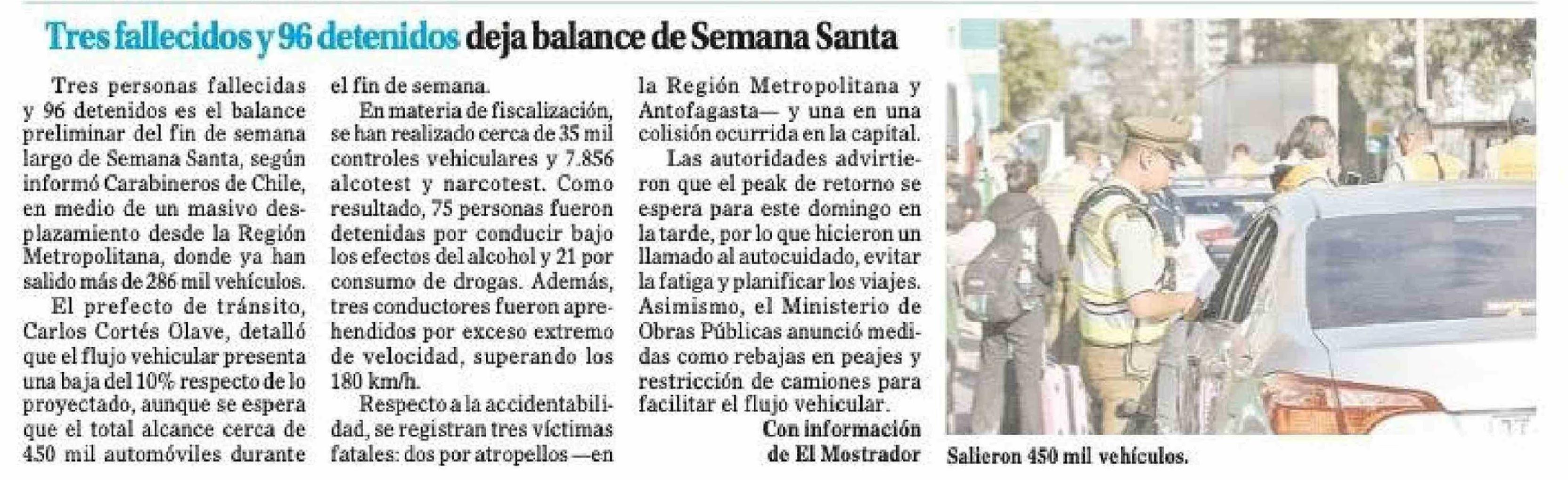 | Título: | Tres fallecidos y 96 detenidos deja balance de Semana Santa |