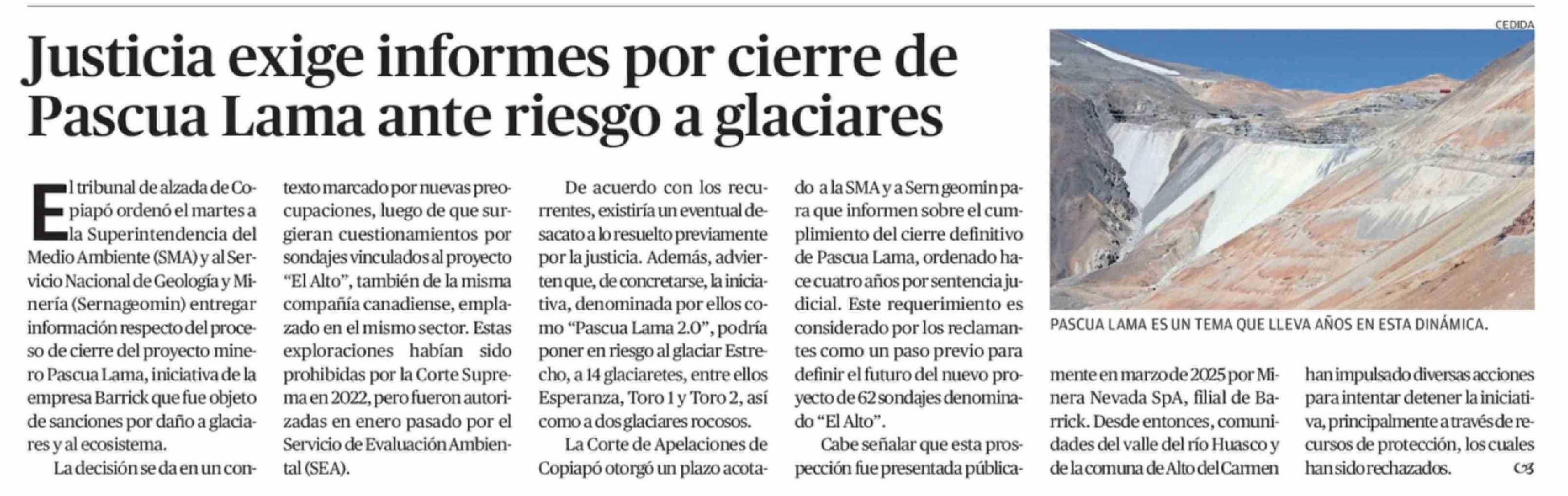 Título: Justicia exige informes por cierre de Pascua Lama ante riesgo a glaciares