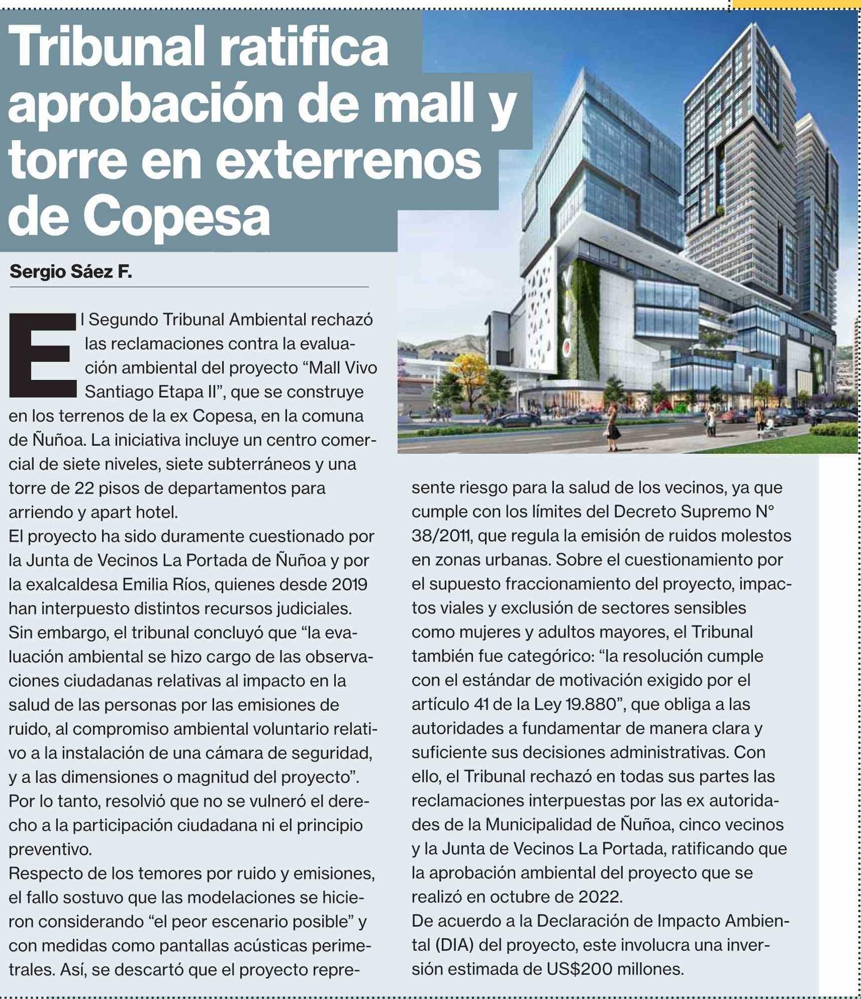 Tribunal ratifica aprobación de mall y torre en exterrenos y de Copesa 05-06-2025 La Segunda |