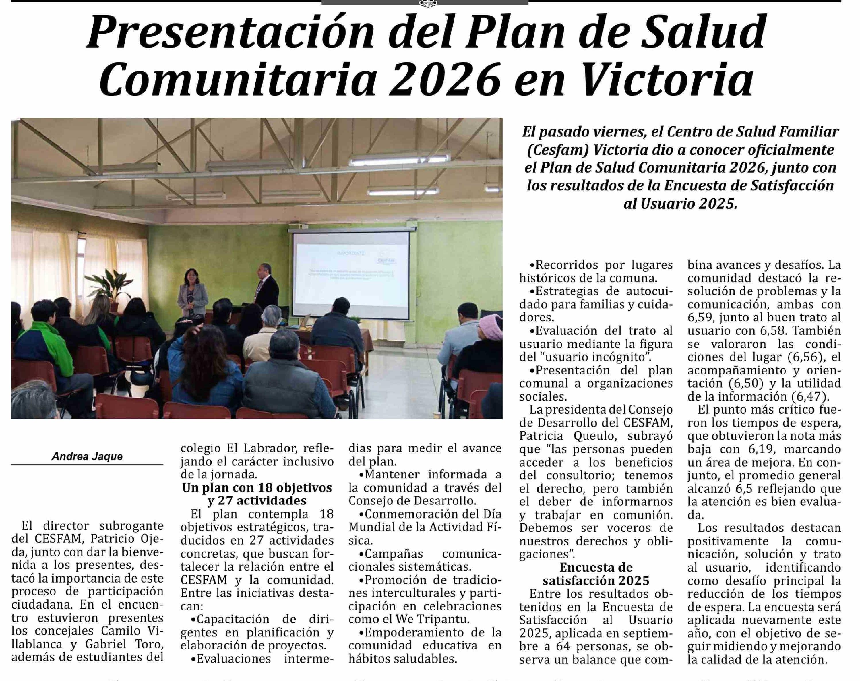 | Título: | Presentación del Plan de Salud Comunitaria 2026 en Victoria |