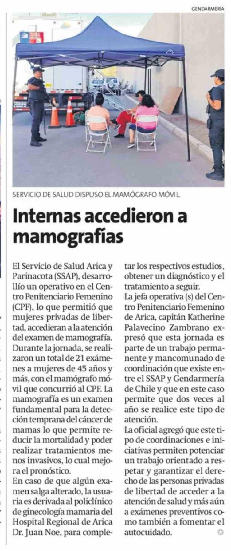 Internas accedieron a mamografías 19-02-2026 La Estrella de Arica |