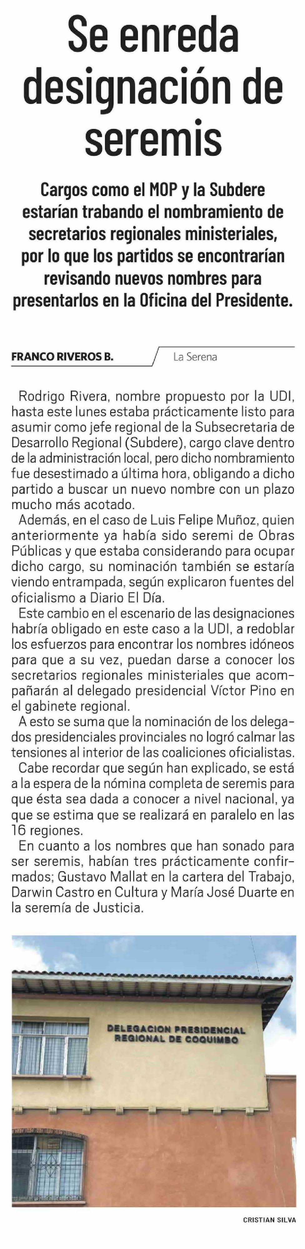 Título: Se enreda designación de seremis