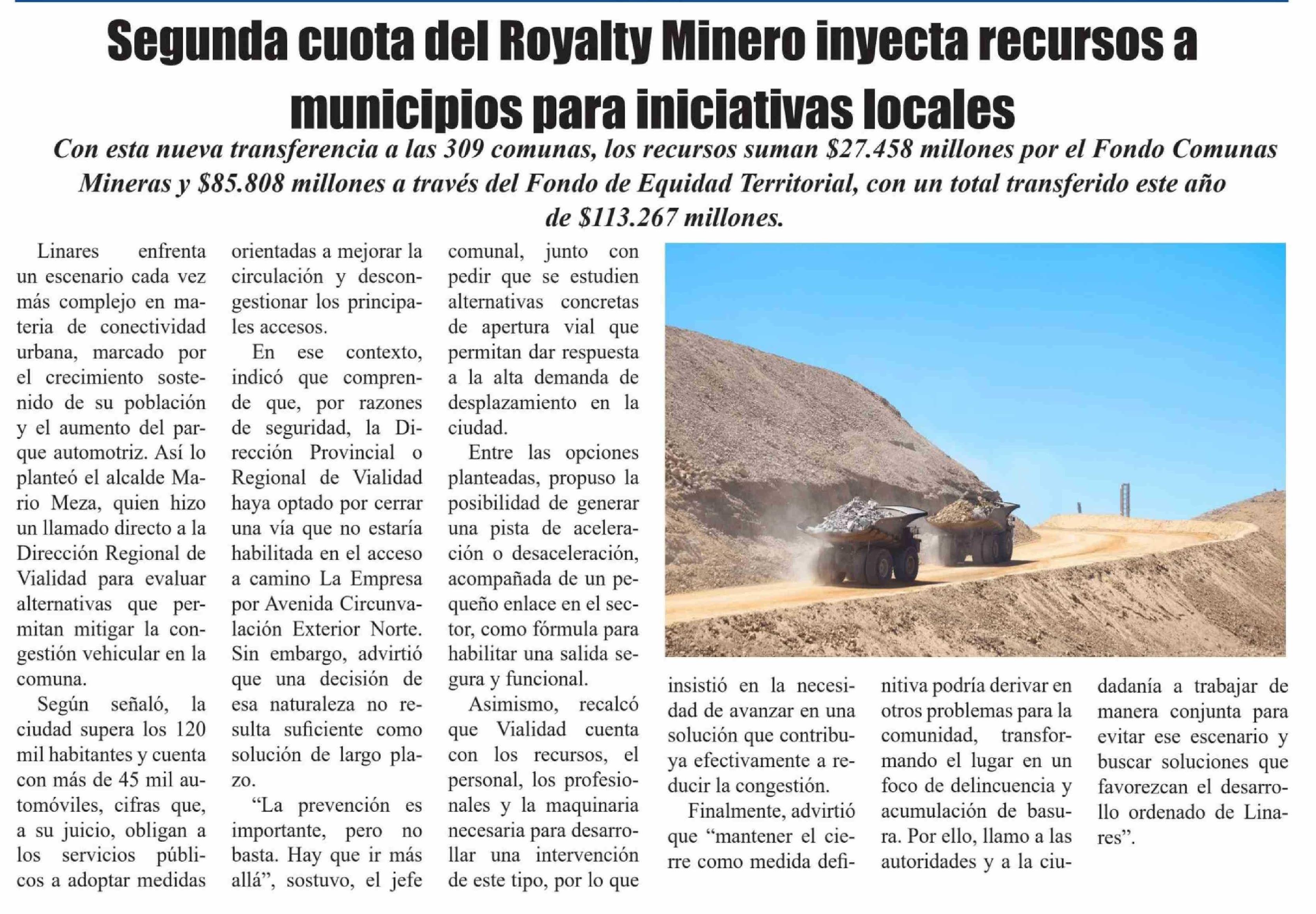 Título: Segunda cuota del Royalty Minero inyecta recursos a municipios para iniciativas locales