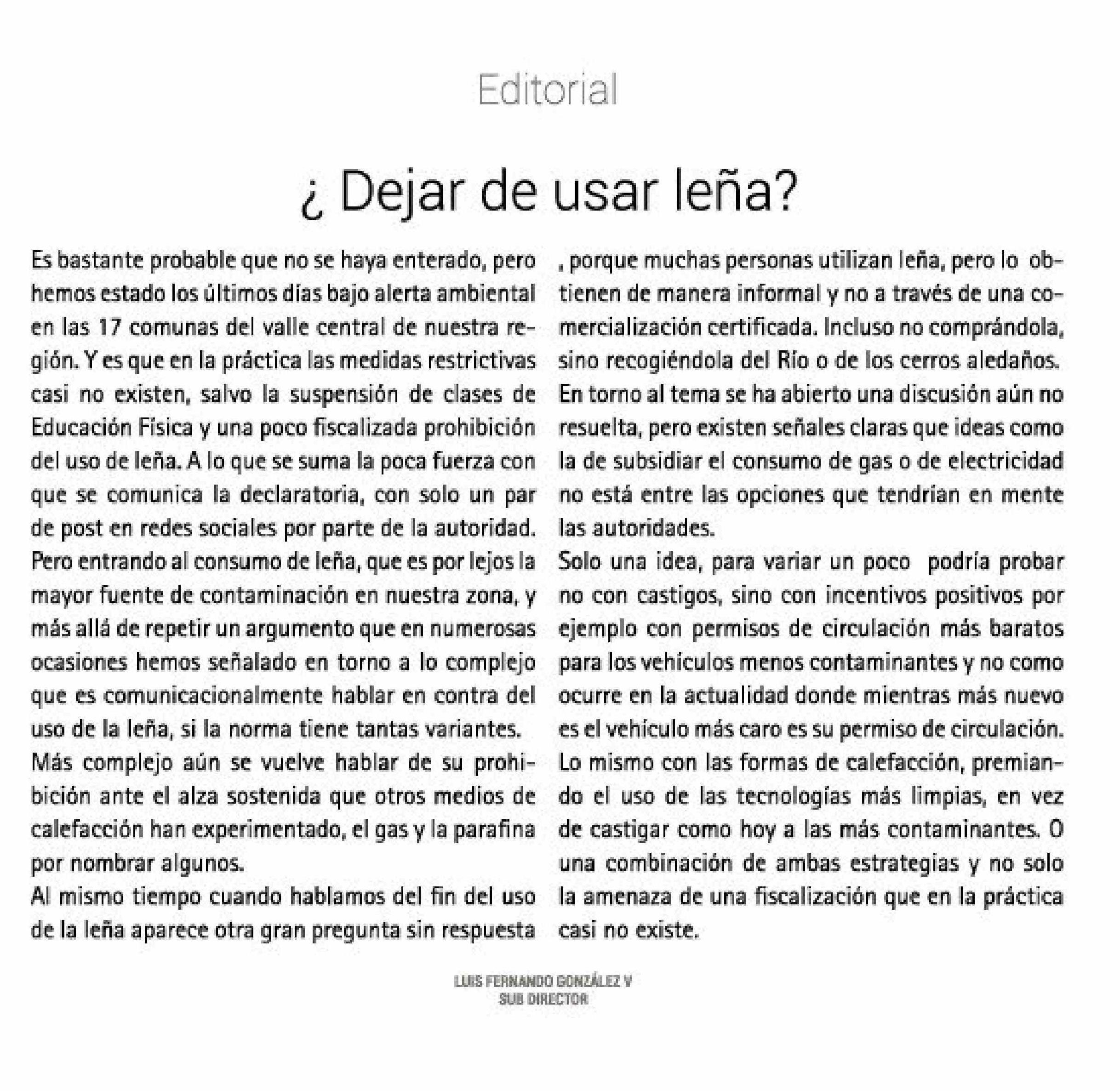 Título: EDITORIAL: ¿ Dejar de usar leña?