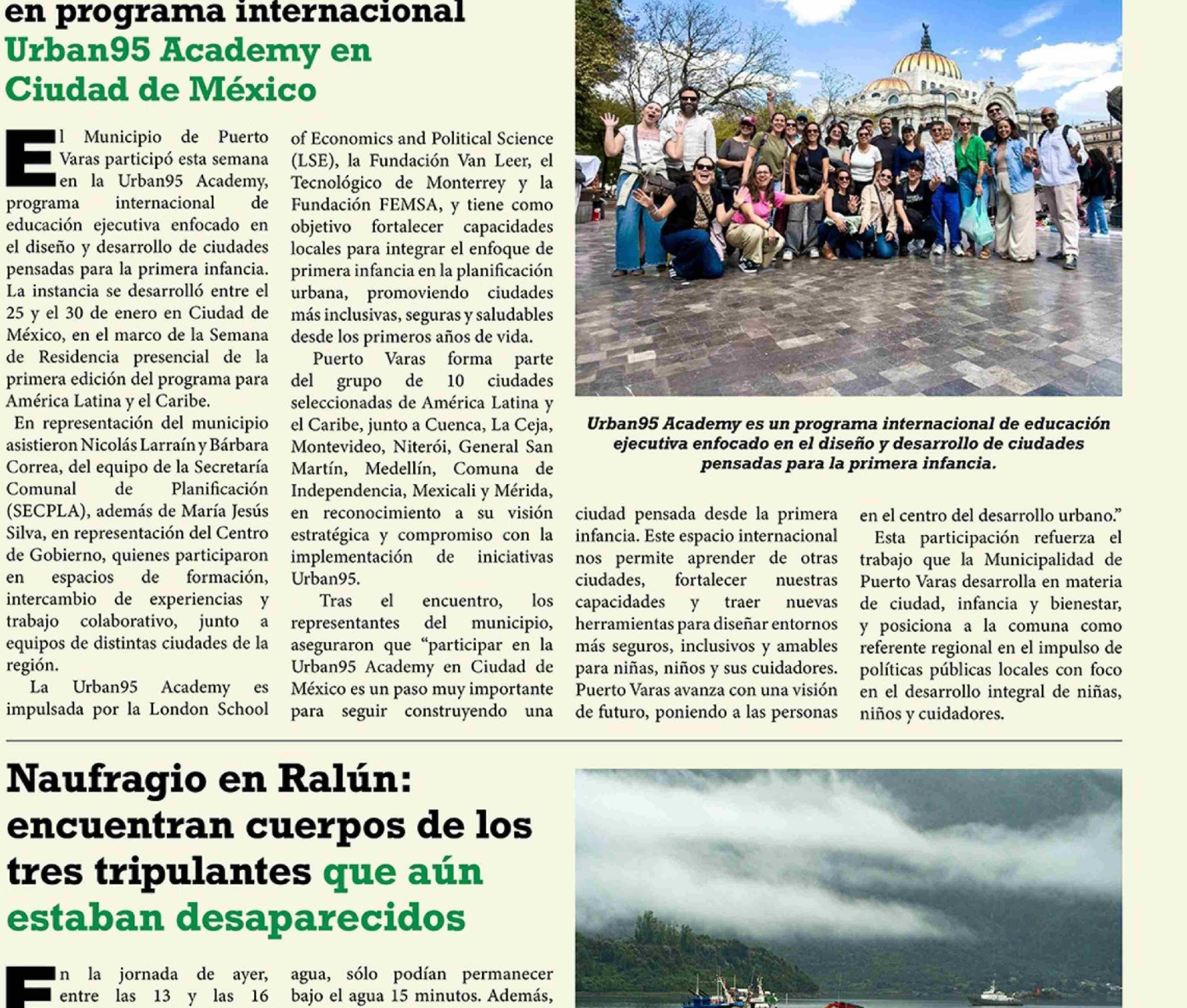 Puerto Varas representa a Chile en programa internacional Urban95 Academy en Ciudad de México 29-01-2026 El Heraldo Austral |