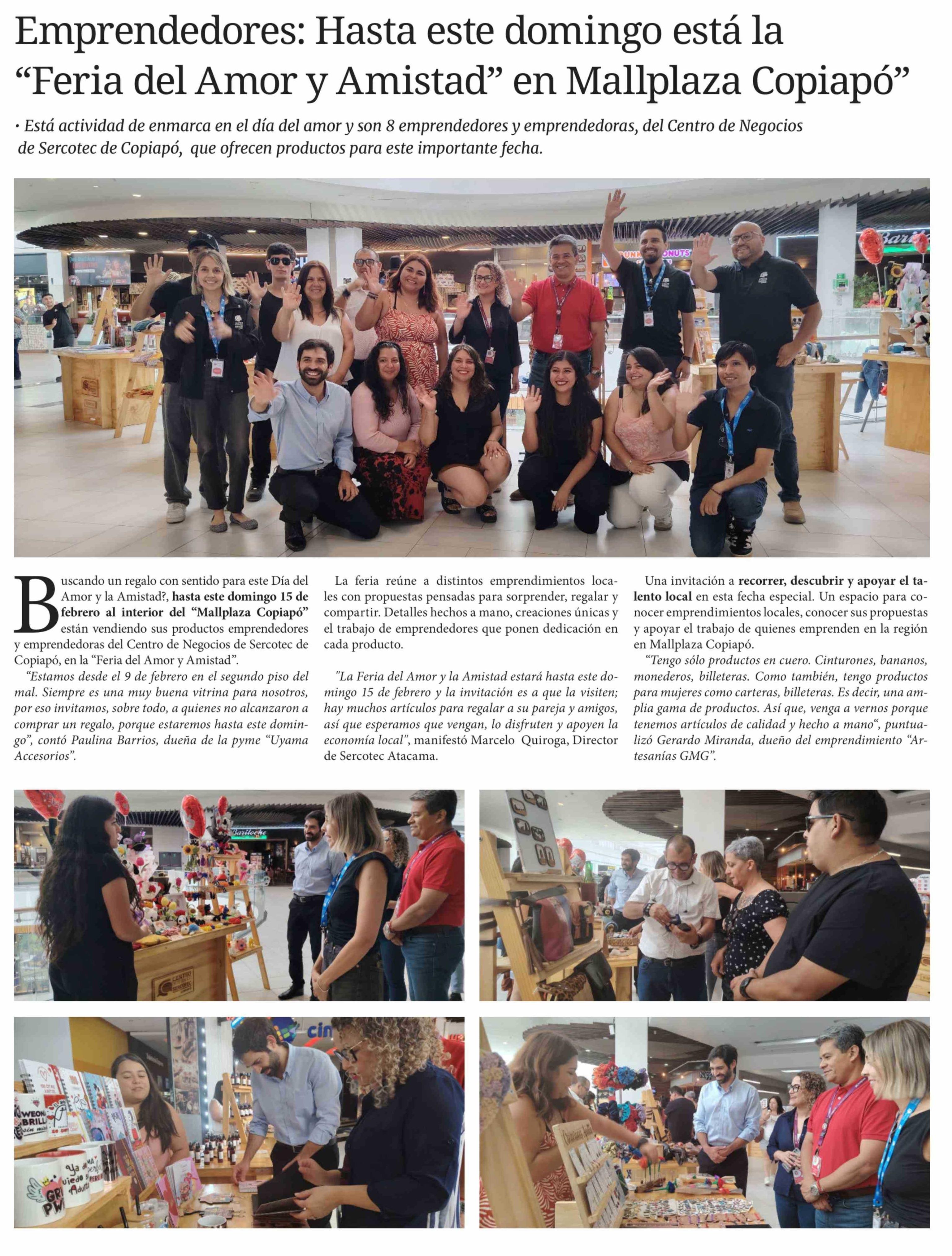 Emprendedores: Hasta este domingo está la "Feria del Amor y Amistad" en Mallplaza Copiapó" 15-02-2026 Diario Chañarcillo |