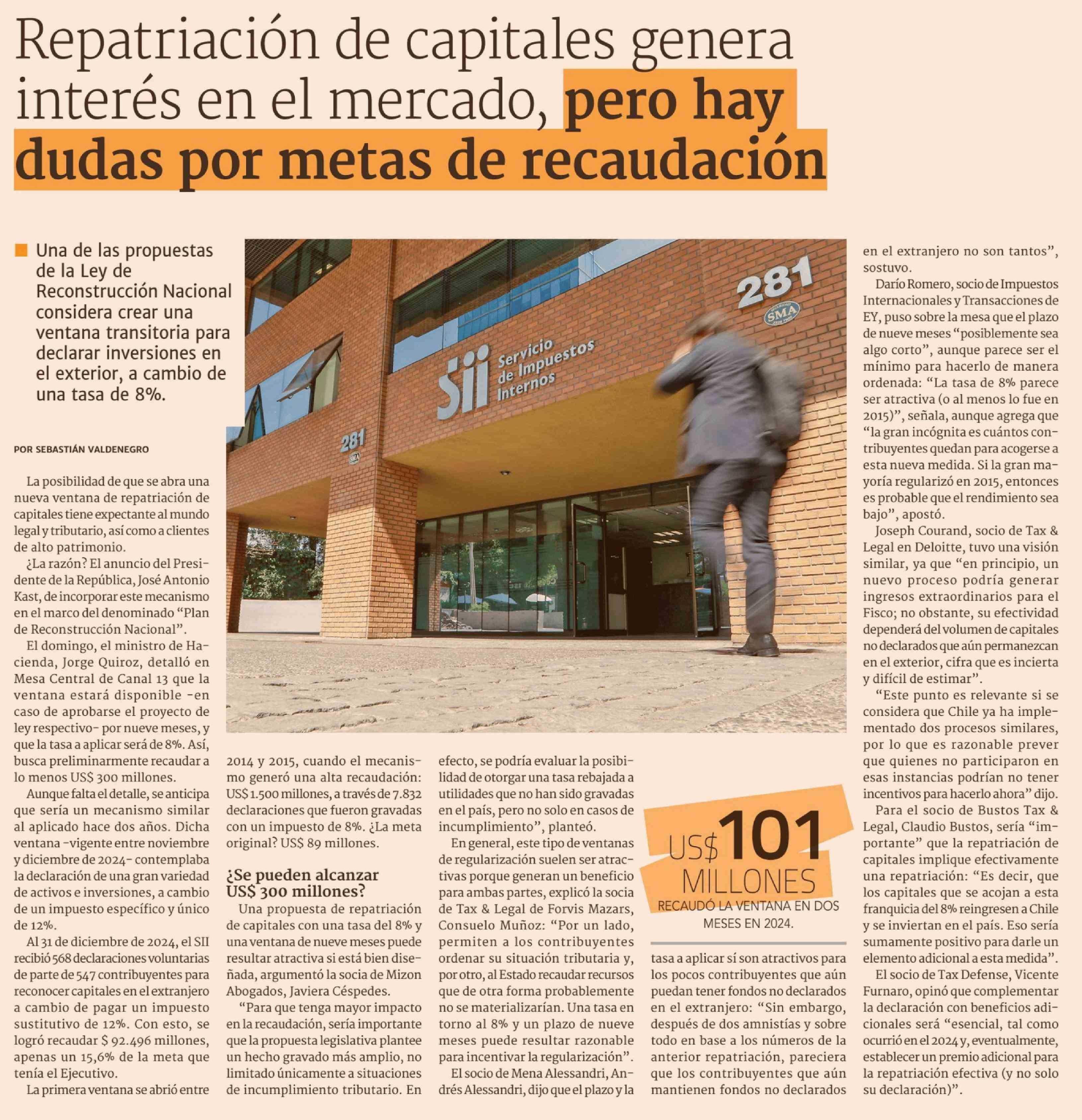 Título: Repatriación de capitales genera interés en el mercado, pero hay dudas por metas de recaudación