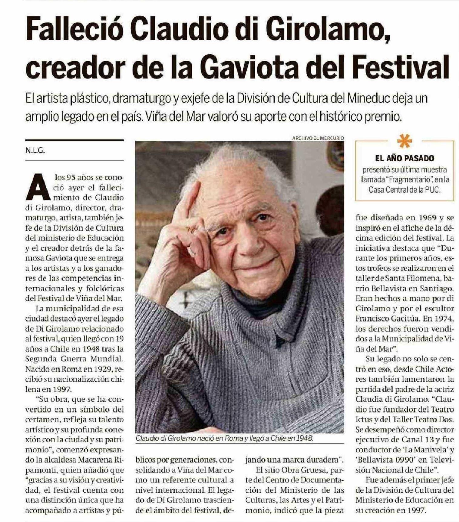Título: Falleció Claudio di Girolamo, creador de la Gaviota del Festival