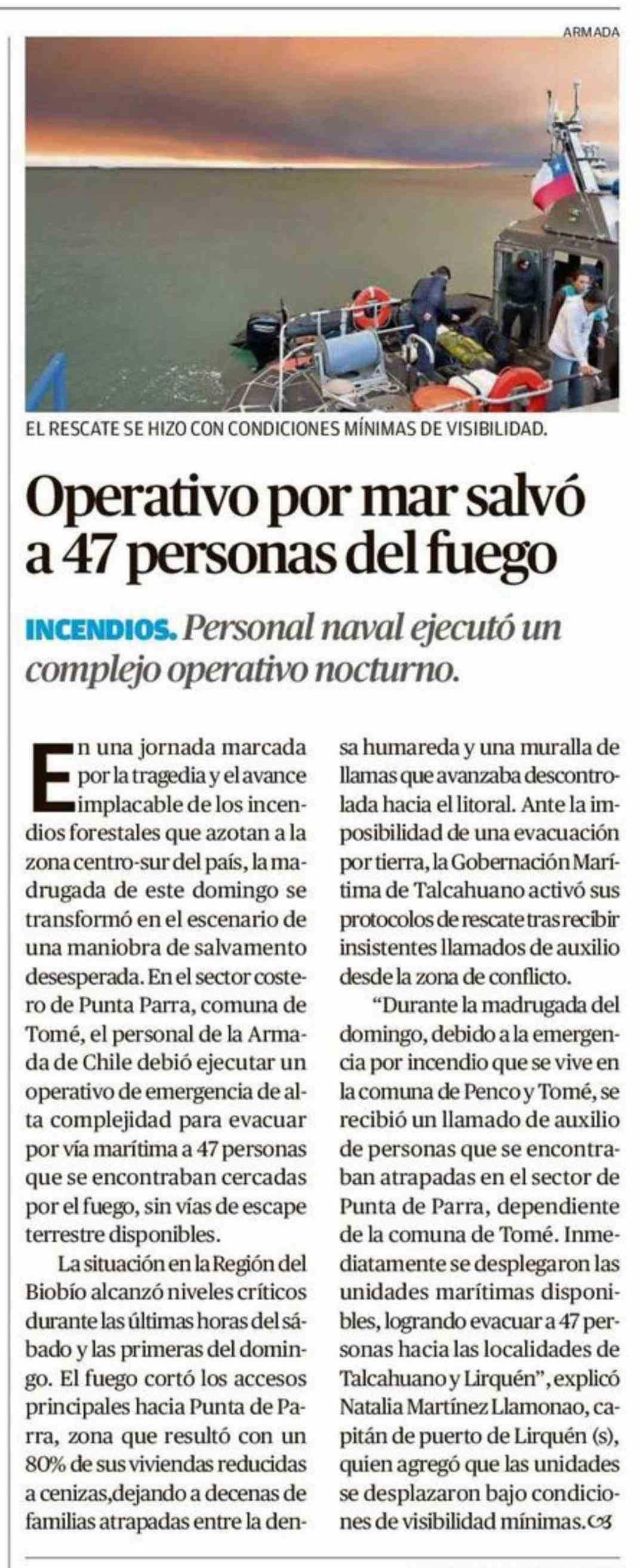 Título: Operativo por mar salvó a 47 personas del fuego