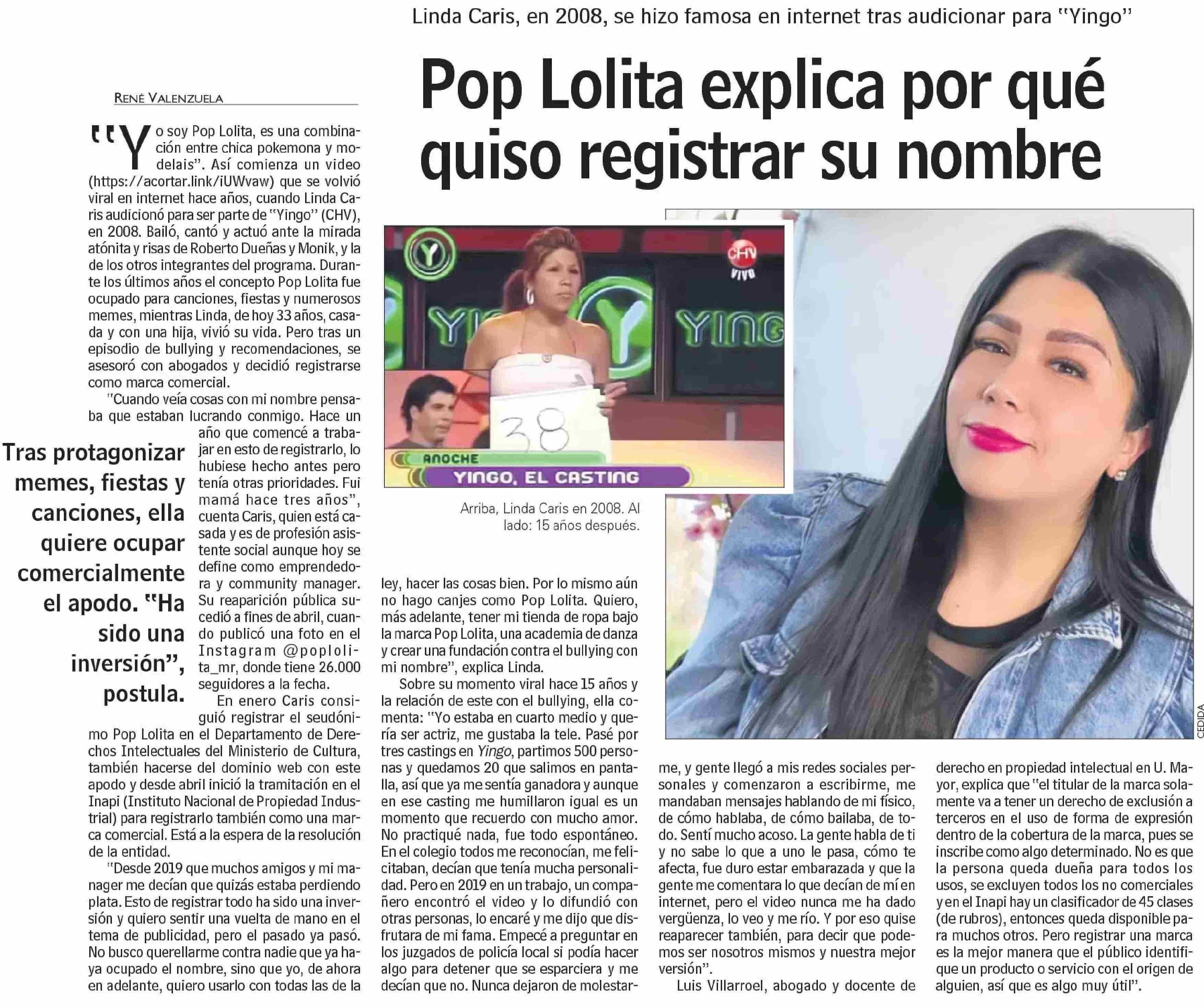 | Título: | Pop Lolita explica por qué quiso registrar su nombre |