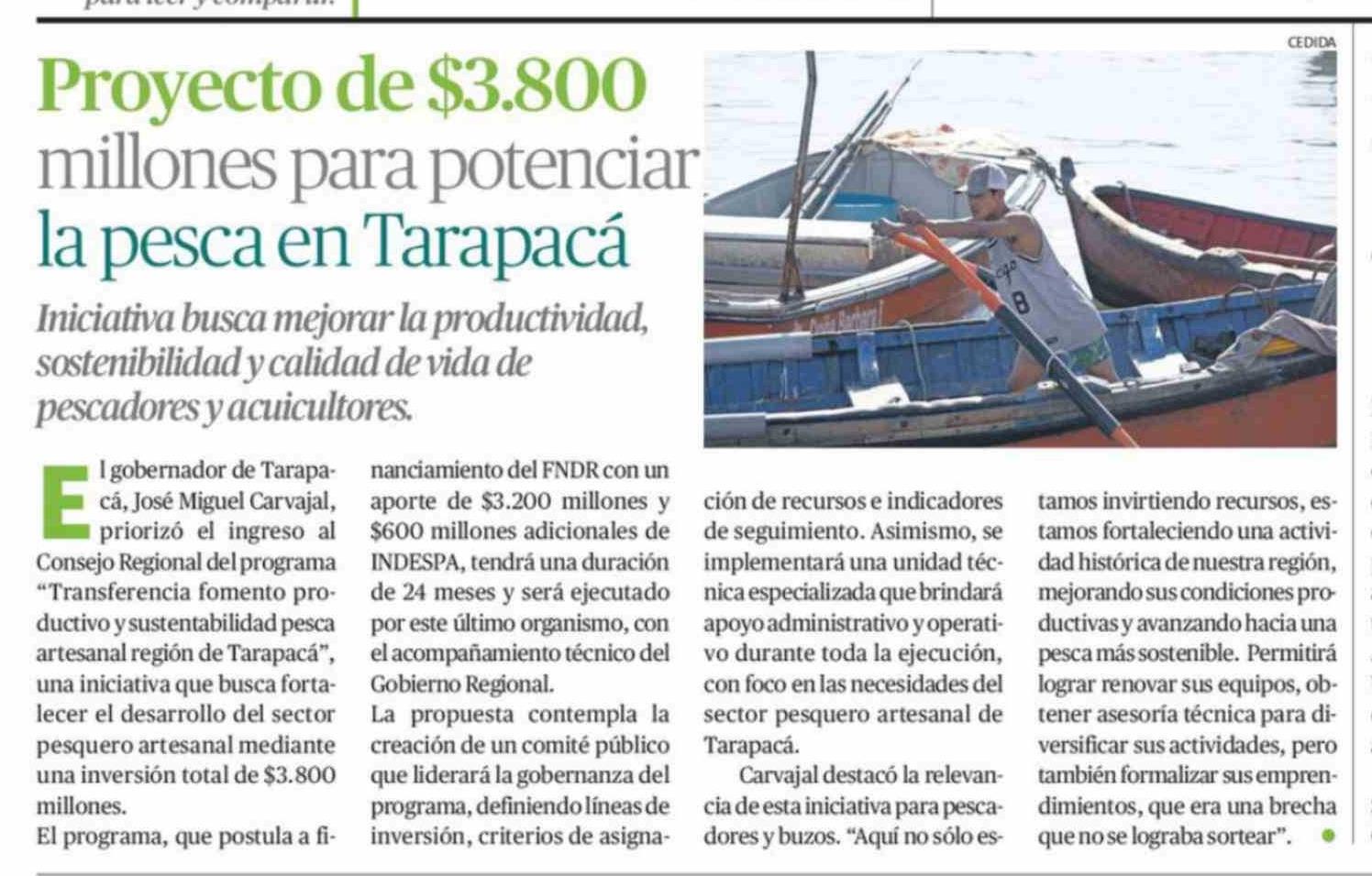 Proyecto de $3.800 millones para potenciar la pesca en Tarapacá 19-04-2026 La Estrella de Iquique |