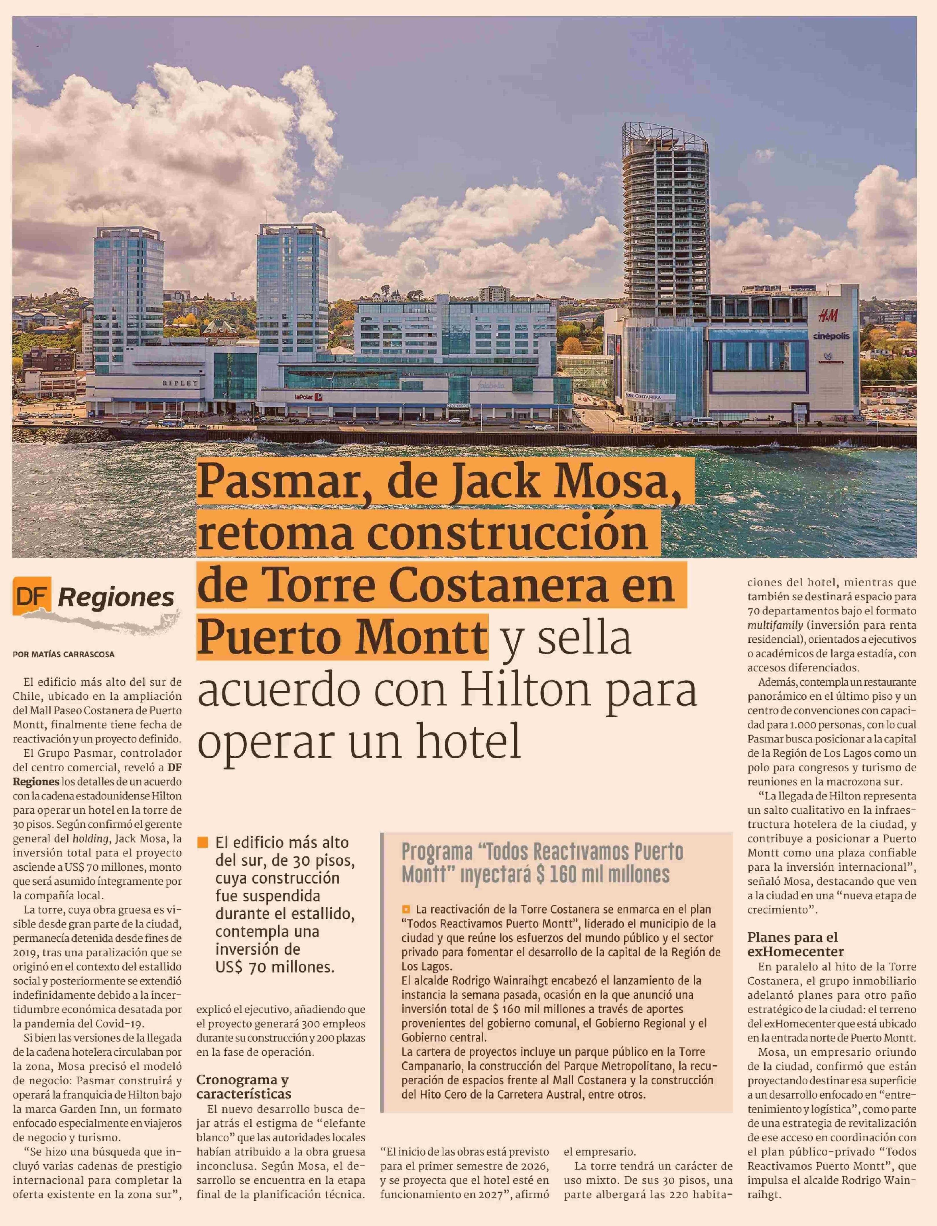 Título: Pasmar, de Jack Mosa. retoma construcción de Torre Costanera en Puerto Montt y sella acuerdo con Hilton para operar un hotel