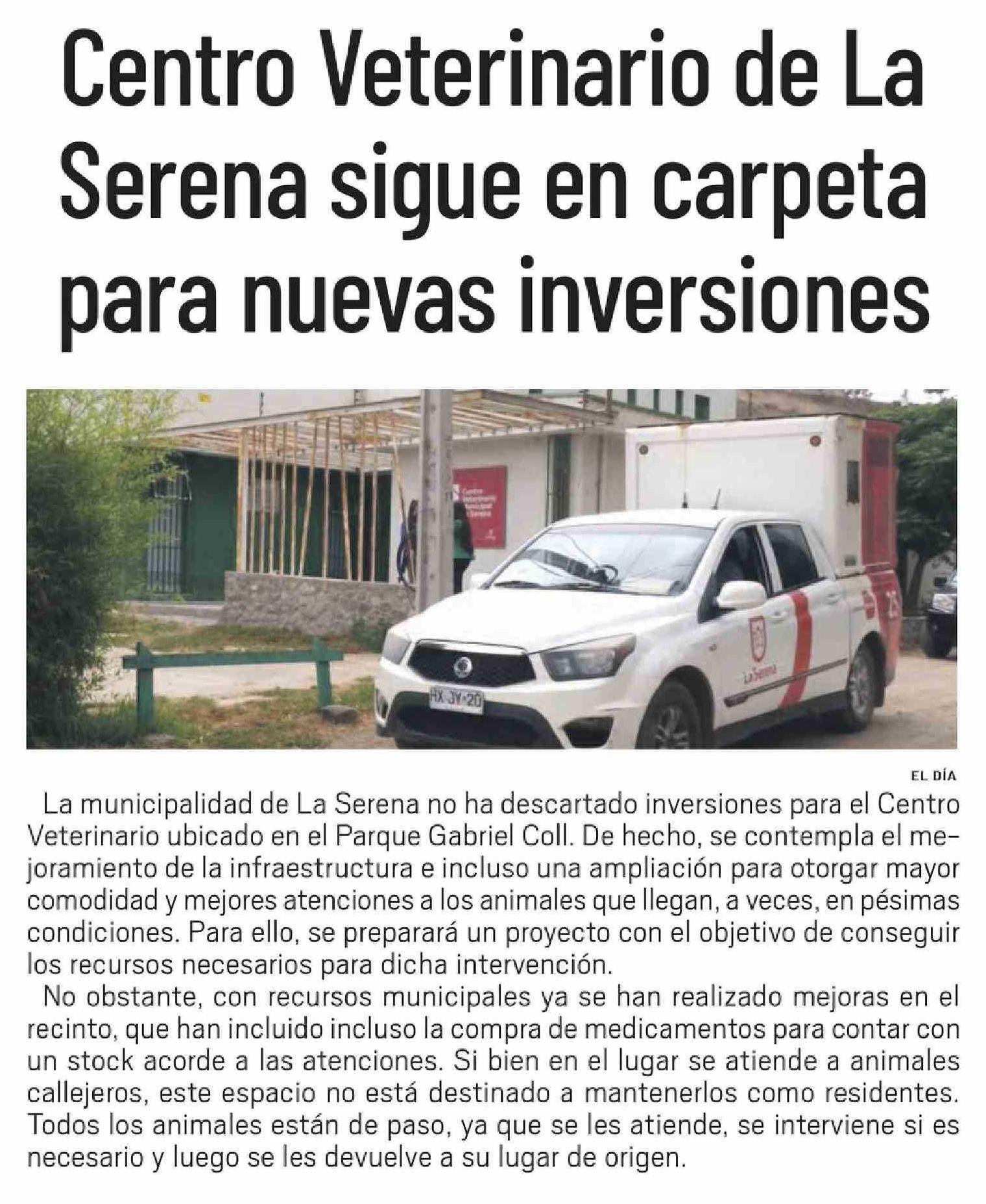 Título: Centro Veterinario de La Serena sigue en carpeta para nuevas inversiones