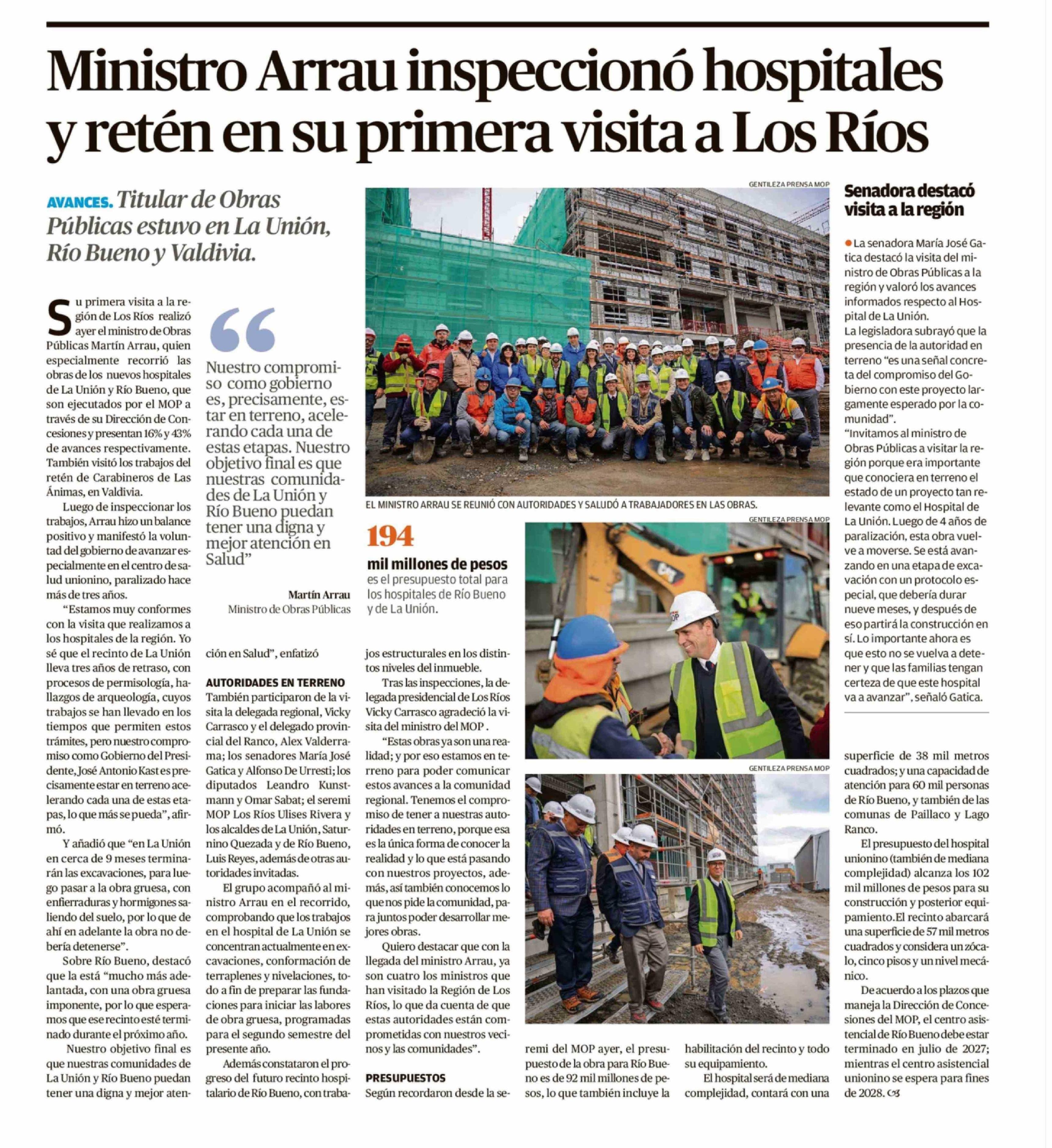 Ministro Arrau inspeccionó hospitales y retén en su primera visita a Los Ríos 18-04-2026 Diario Austral Región de Los Ríos |