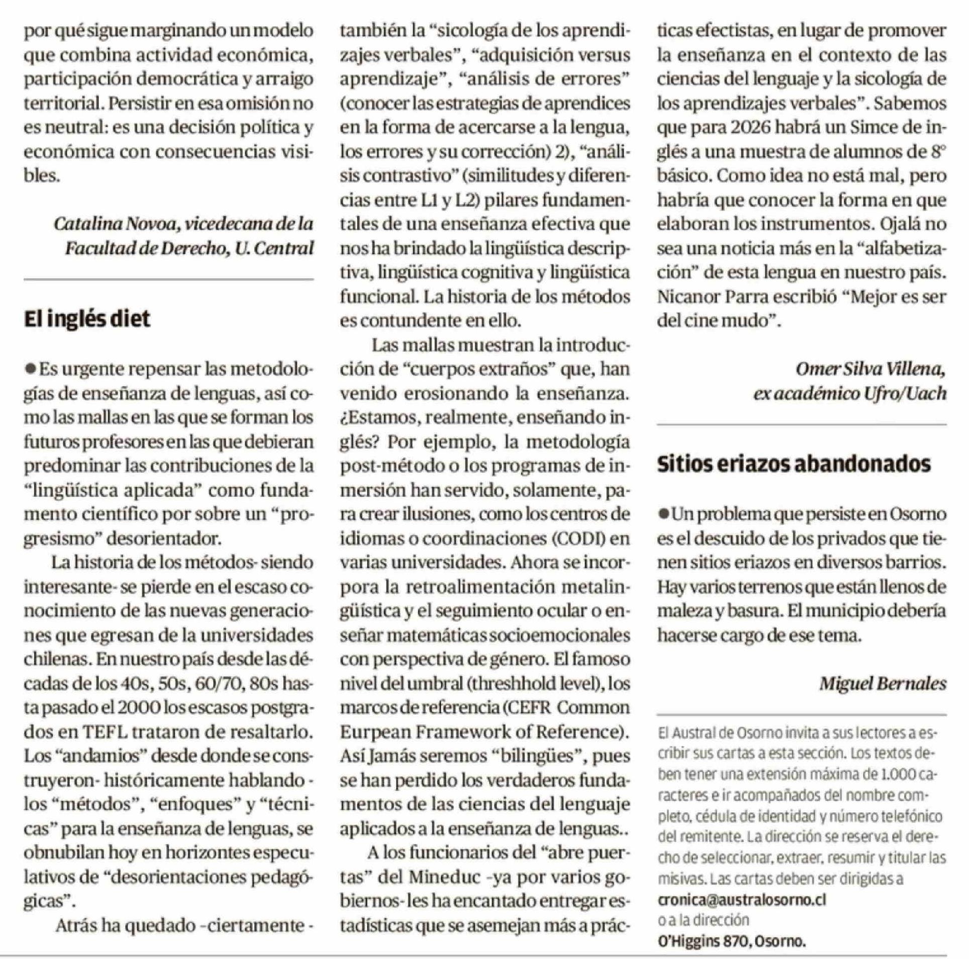 Cartas: El inglés diet 10-02-2026 El Austral de Osorno |
