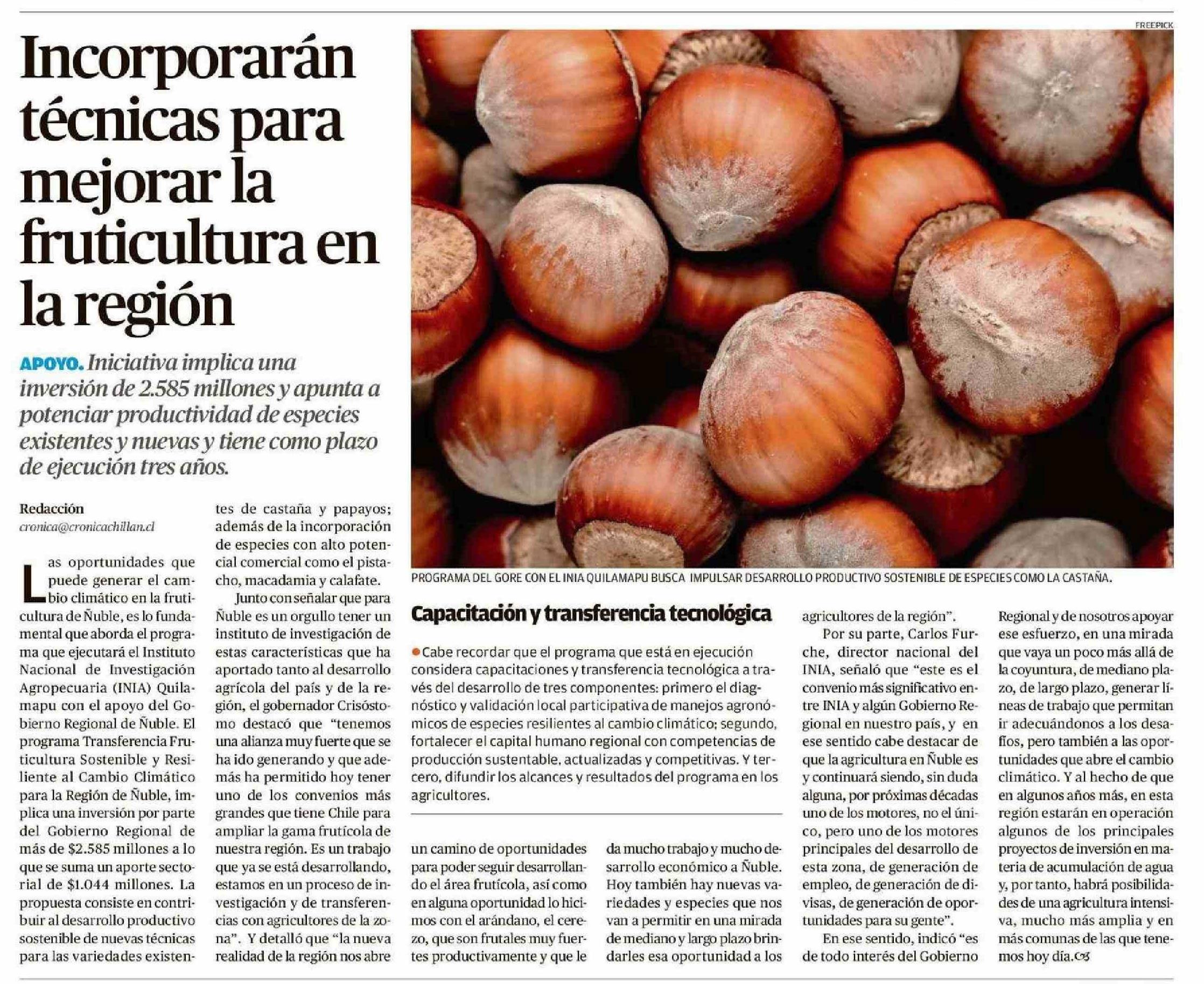 Incorporarán técnicas para mejorar la fruticultura en la región 13-03-2025 Crónica de Chillán |