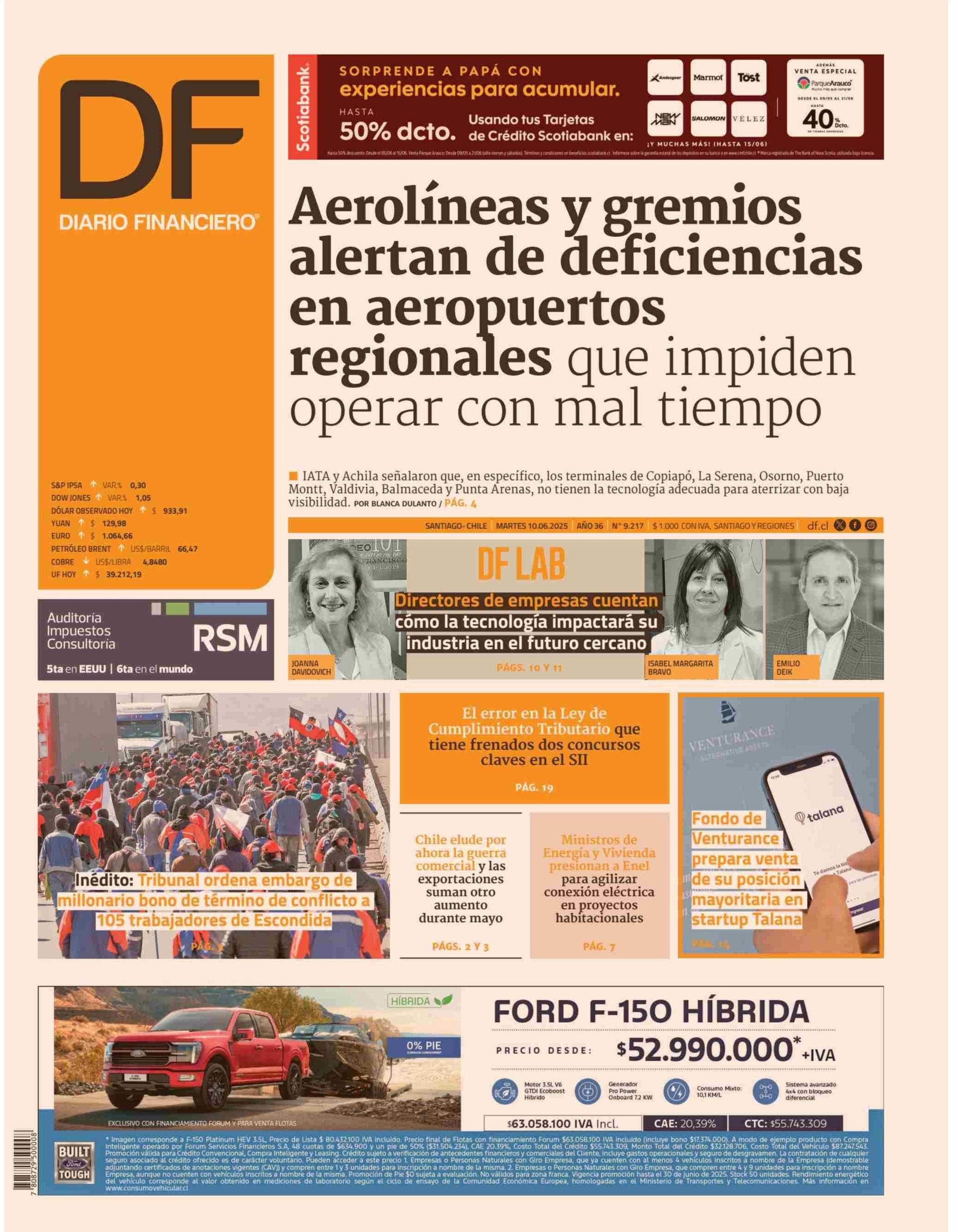PORTADA DIARIO FINANCIERO CHILE 10-06-2025 Diario Financiero |