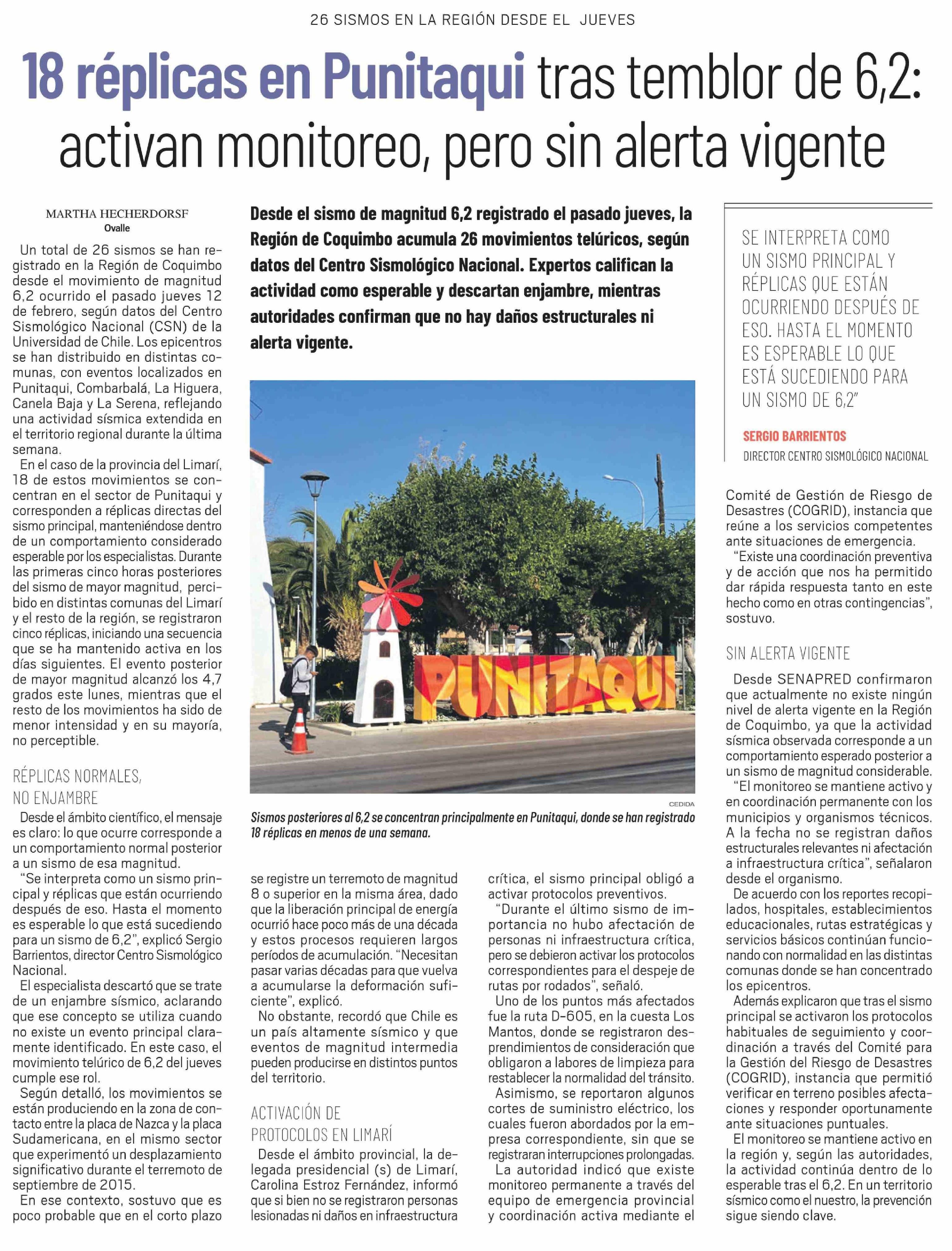 | Título: | 18 Réplicas en Punitaqui tras temblor de 6,2: activan monitoreo, pero sin alerta vigente |