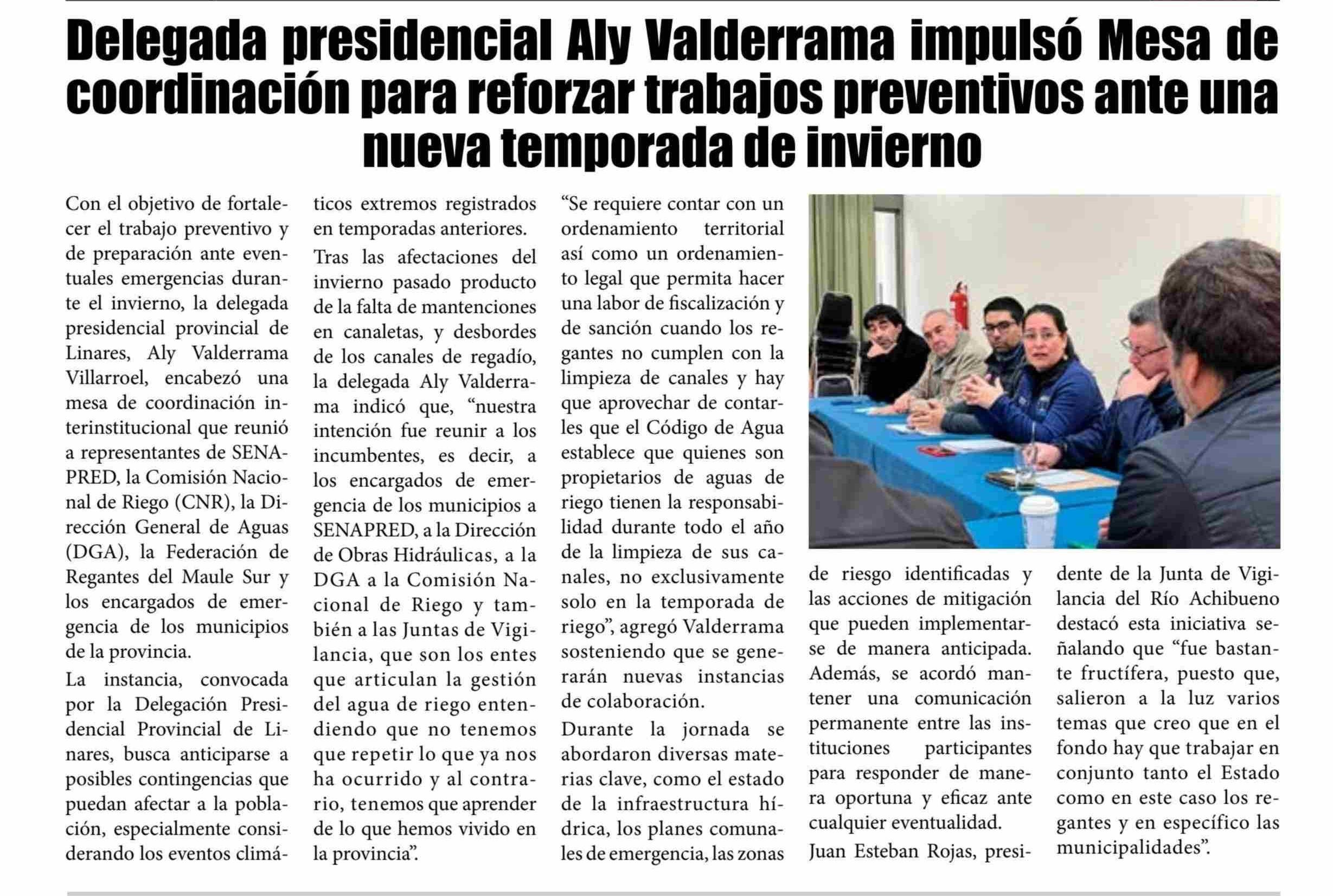 | Título: | Delegada presidencial Aly Valderrama impulsó Mesa de coordinación para reforzar trabajos preventivos ante una nueva temporada de invierno |