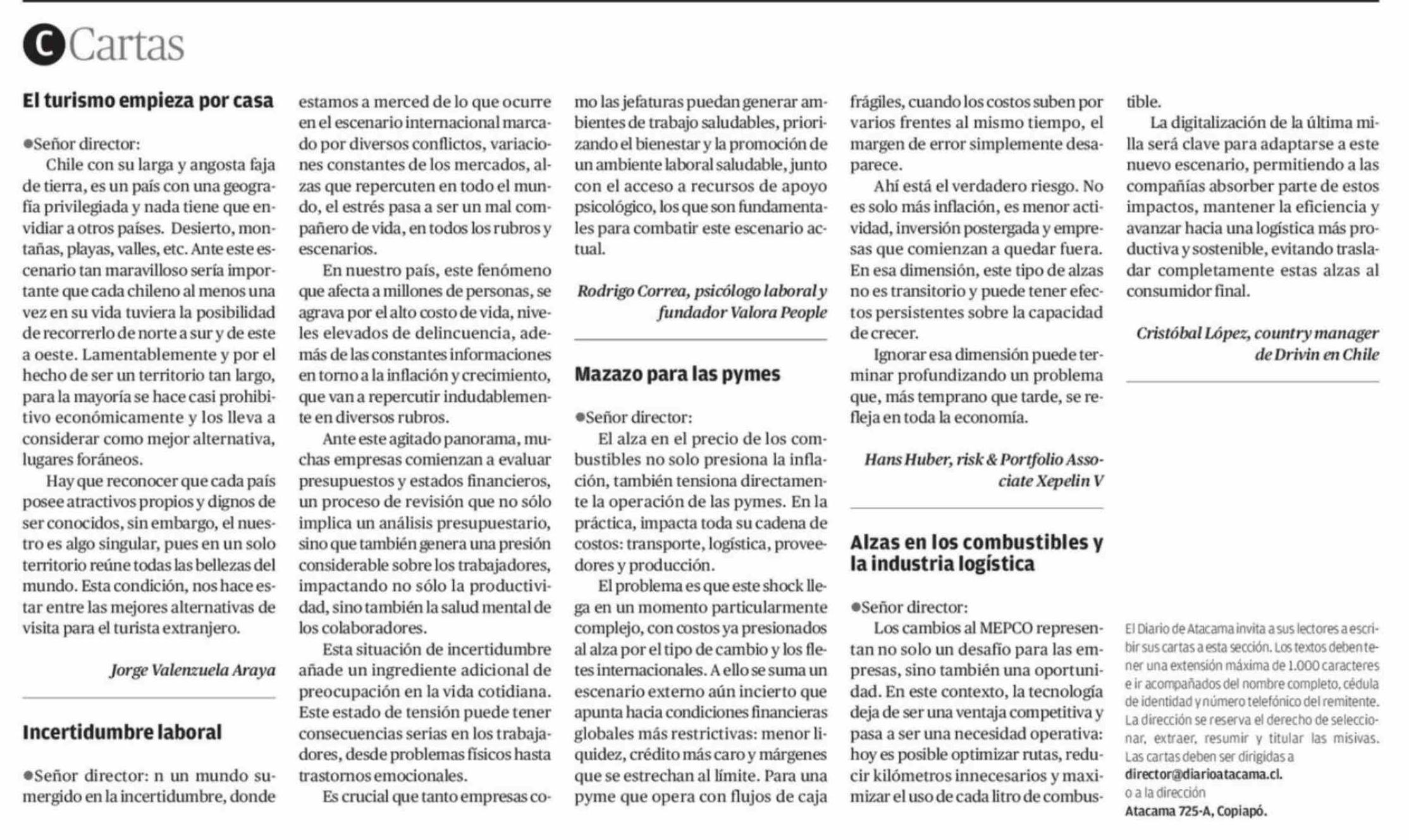 Cartas: El turismo empieza por casa 29-03-2026 El Diario de Atacama |