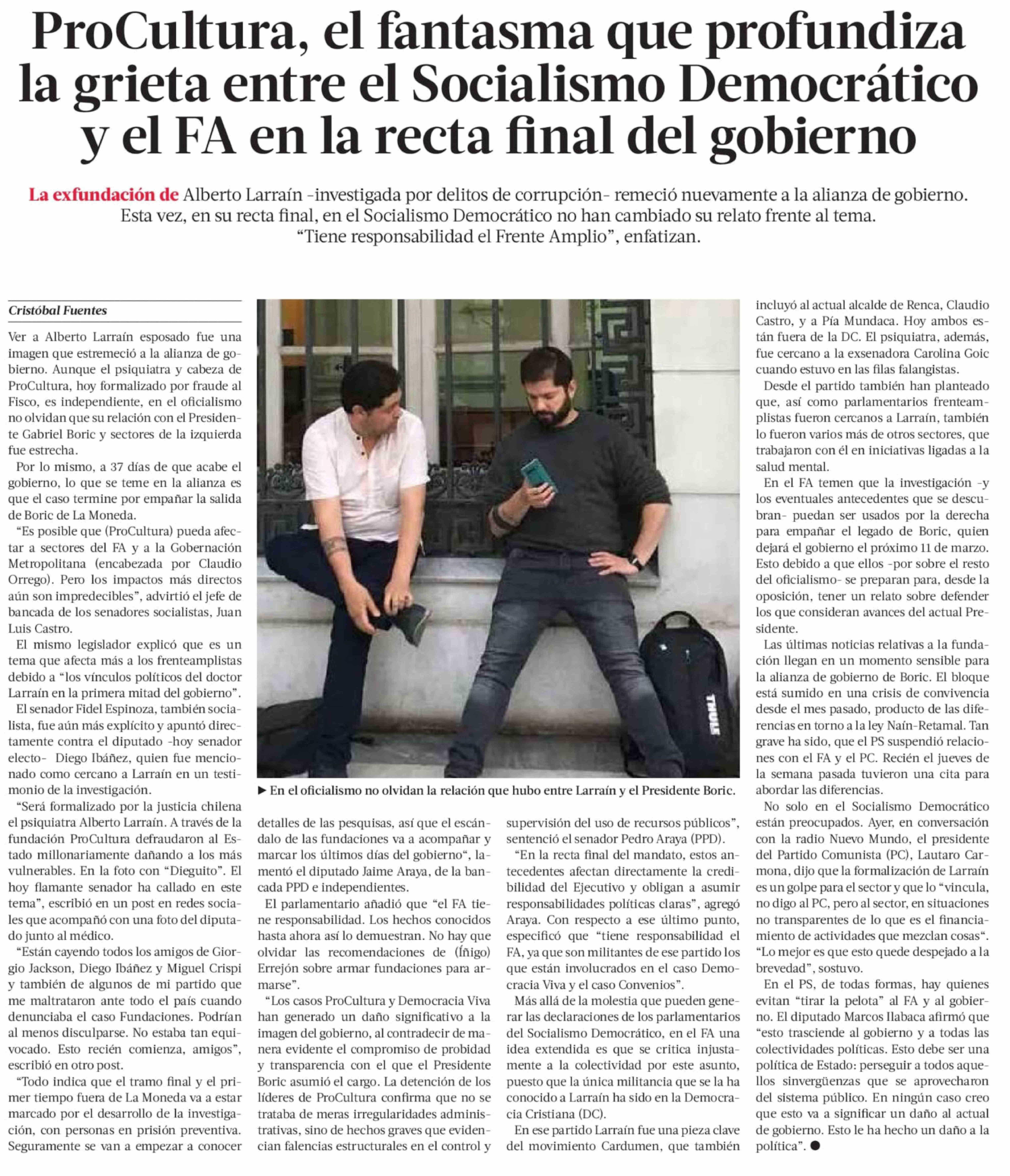 ProCultura, el fantasma que profundiza la grieta entre el Socialismo Democrático y el FA en la recta final del gobierno 03-02-2026 La Tercera |